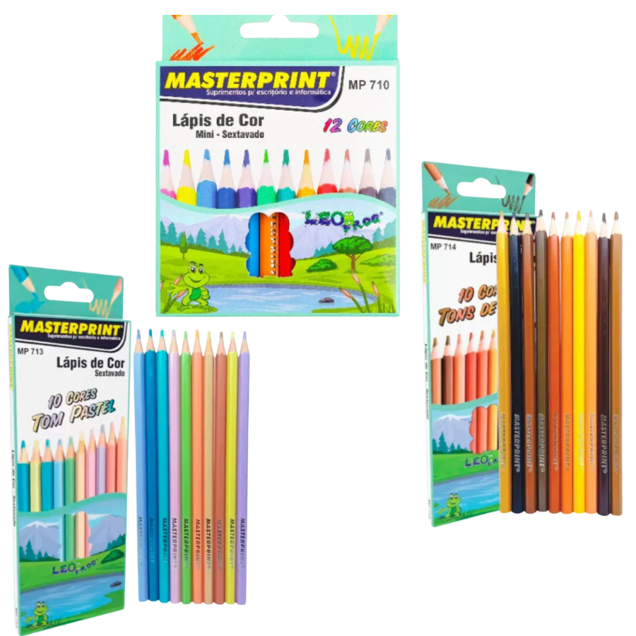 Kit 44 Lápis de Cor 24 Cores Vivas +10 Tom Pastel +10 Tons de Pele Masterprint