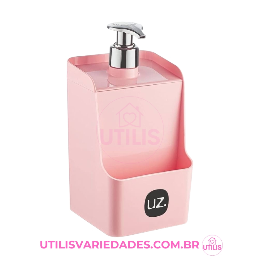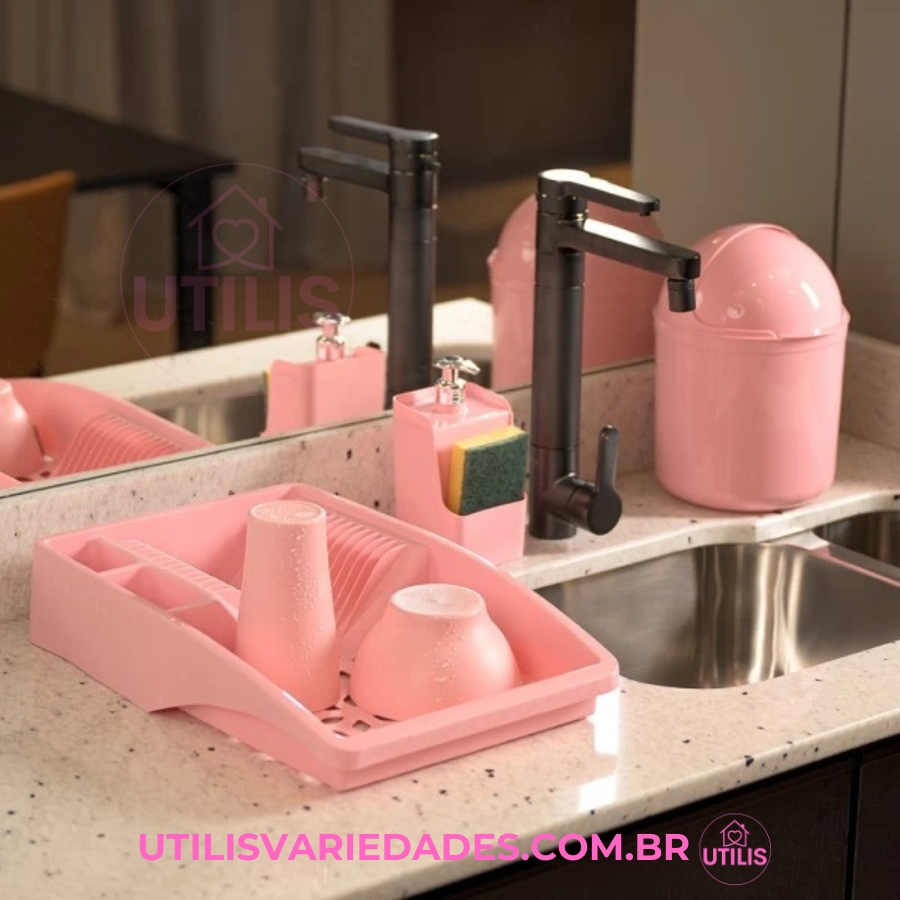 Kit 3 Peças UZ para Pia — Escorredor, Lixeira e Porta Detergente — Rosa