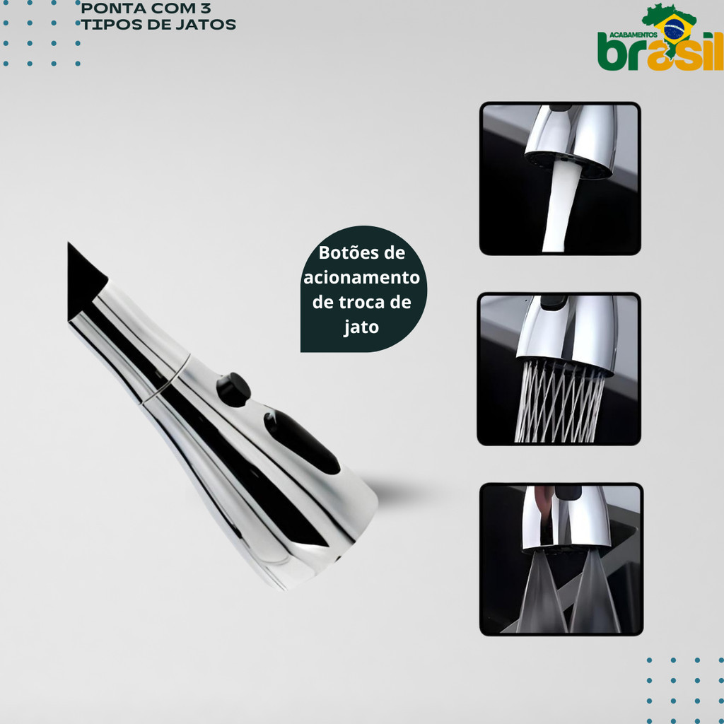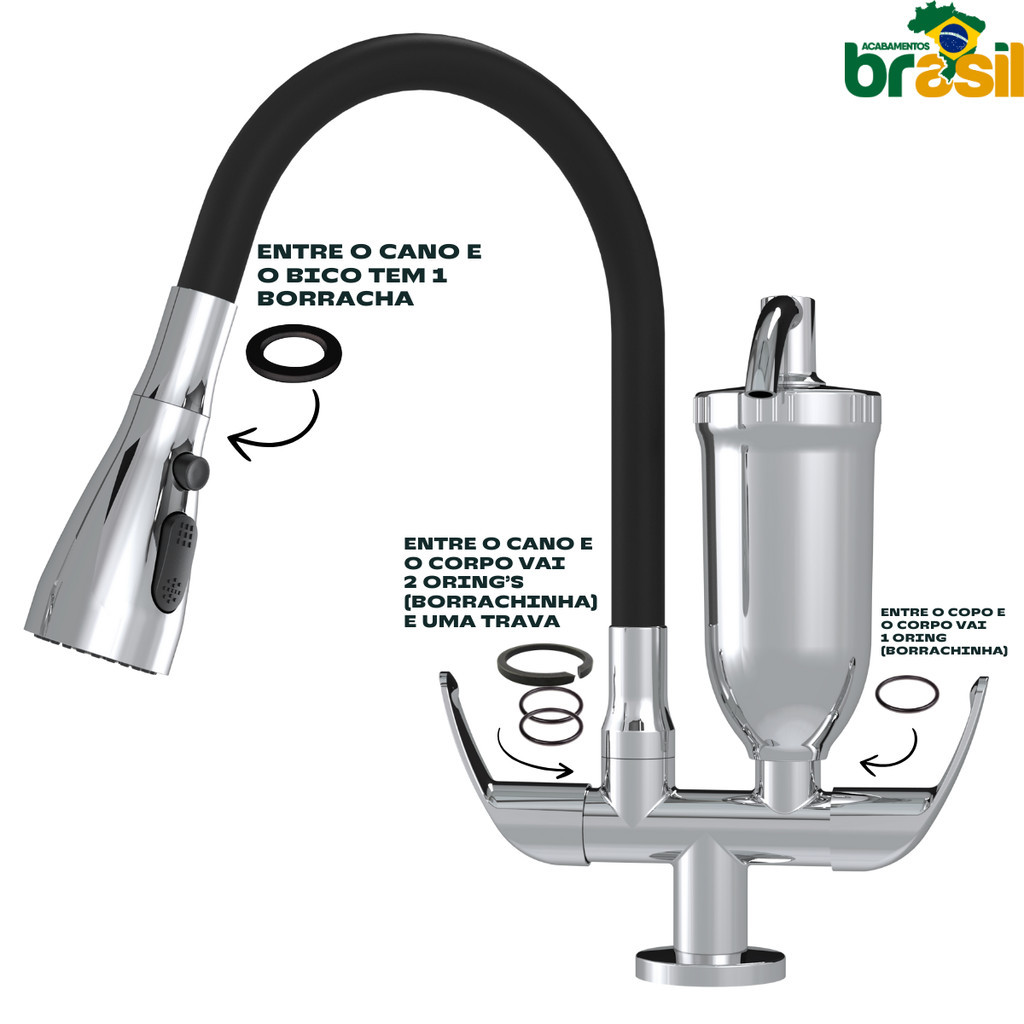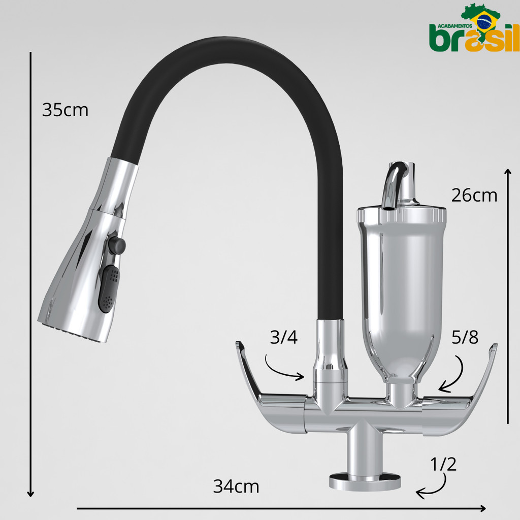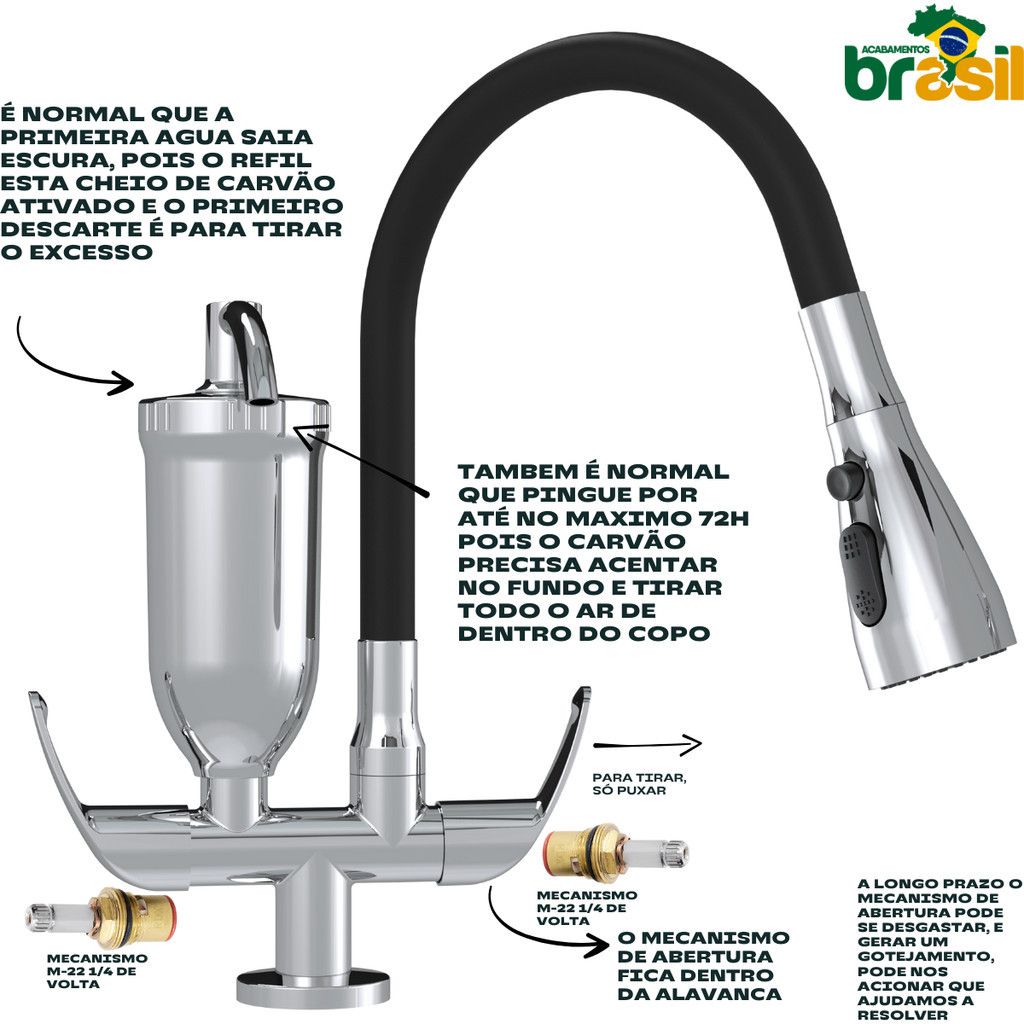 Torneira Filtro Bancada Cromada cozinha pia 3 Jatos filtro preto bica alta pressão
