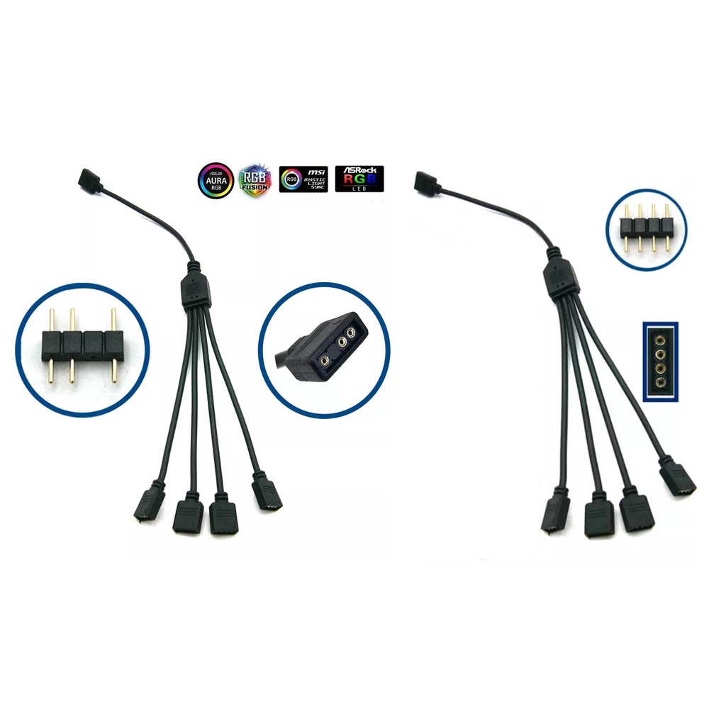CABO ADAPTADOR DIVISOR HUB RGB 5V 3PINOS ou 12V 4PINOS PARA 4 SAIDAS 30CM DEX
