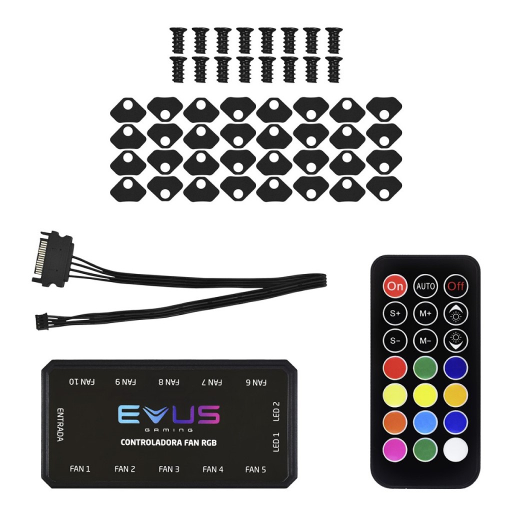 KIT 04 COOLER FAN RGB 12CM 6PINOS + CONTROLADORA E CONTROLE HAYOM FC1306