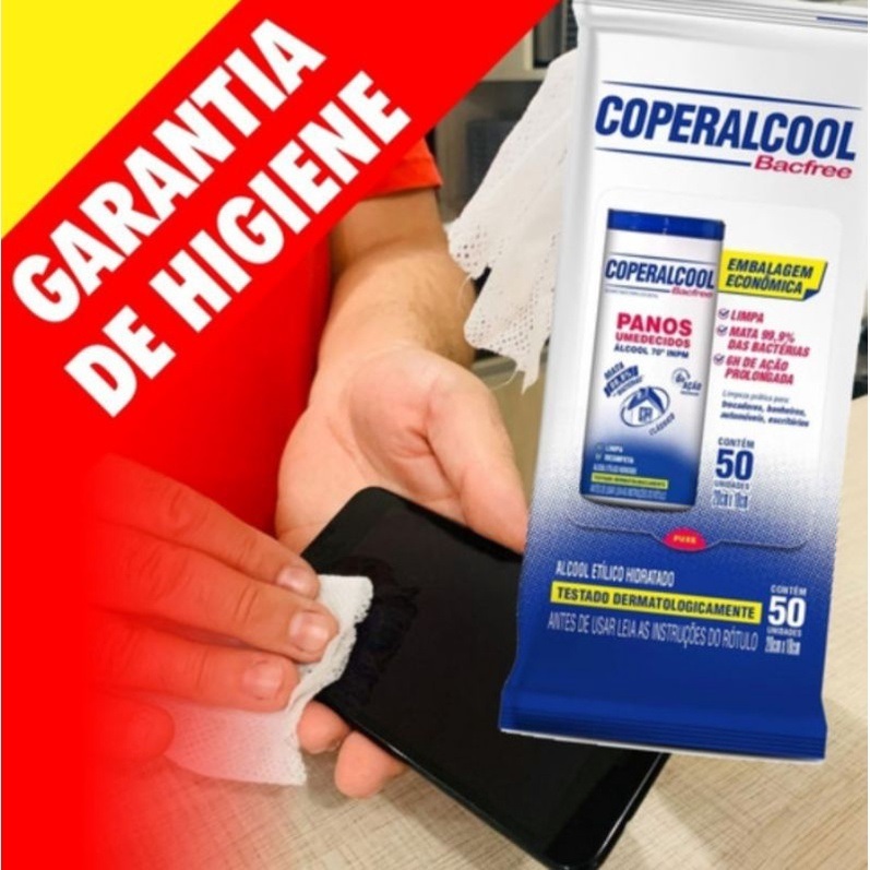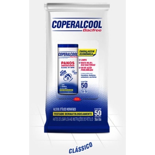 Pano Umedecido Álcool 70 Coperalcool Bacfree 50 Un - Kit C/3