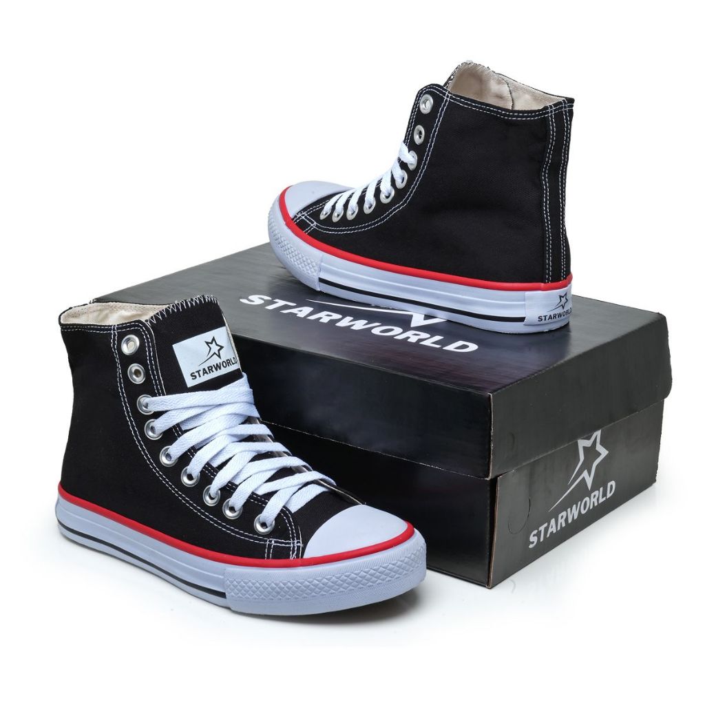 Kit 2 Pares Tênis Cano Alto Unissex Star World Confortável Preto Branco Casual Skatista