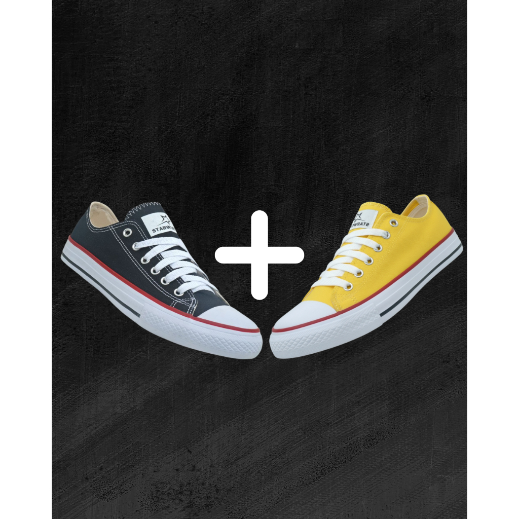 Kit 2 Pares Tênis Cano Baixo Unissex Star world All Confortável Preto Branco Casual