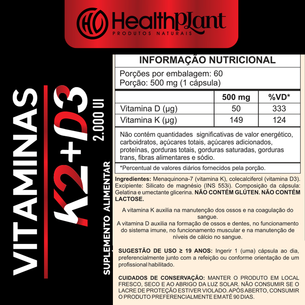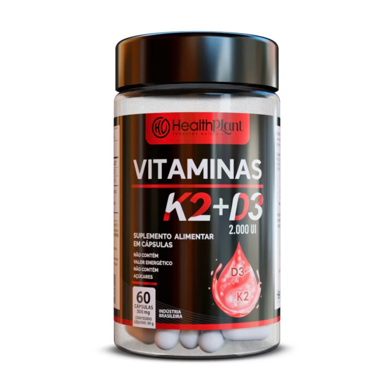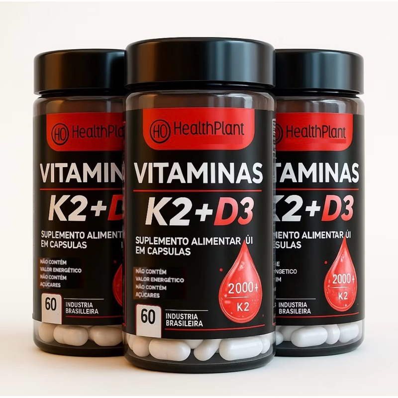 Suplemento em cápsulas Vitaminas K2 + D3 Menaquinoma Vitaminas