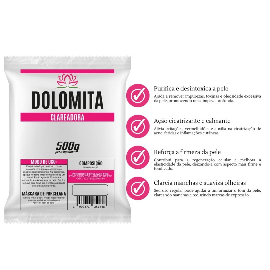 Dolomita em Pó Pura SKINCARE Com Laudo Técnico Esterelizada Dolamita Clareadora de Manchas
