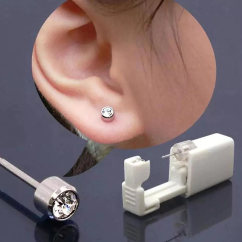 Kit 2 Perfuradores de Orelha e Nariz com Brinco Embutido Aço Cirúrgico