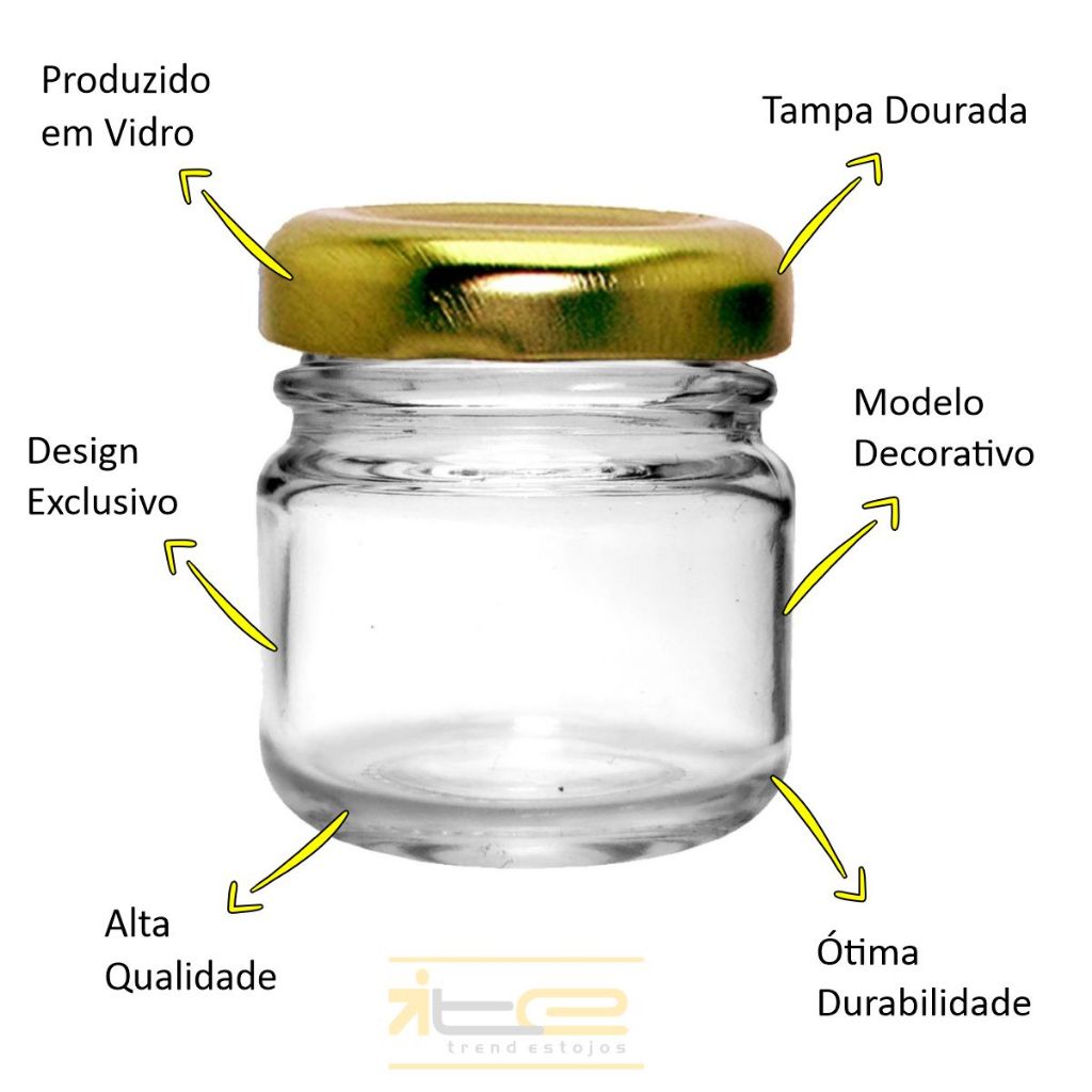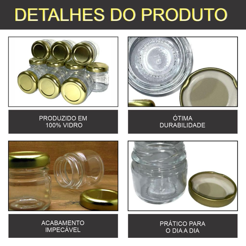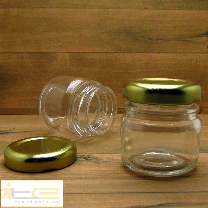 Kit 20 Potinhos Vidro Geleinha Papinha 40ml Lembrancinhas Tampa Dourada