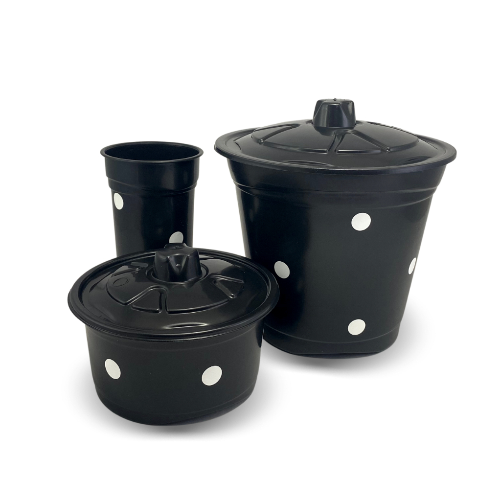 Kit Pia 3 Peças Plástico Poa Cesto de Lixo e Porta Detergent5e Cozinha Decoração de Casa