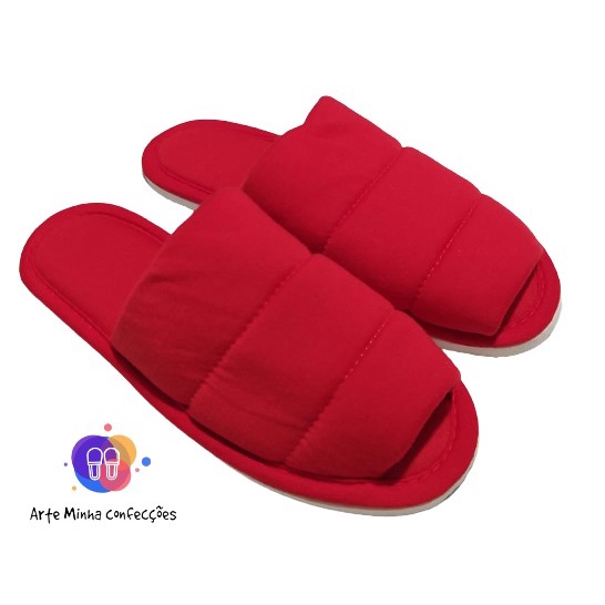 Pantufa Chinelo De Quarto Feminina, Aberta, Em Tecido Malha, Solado Flexível, Conforto para Casa