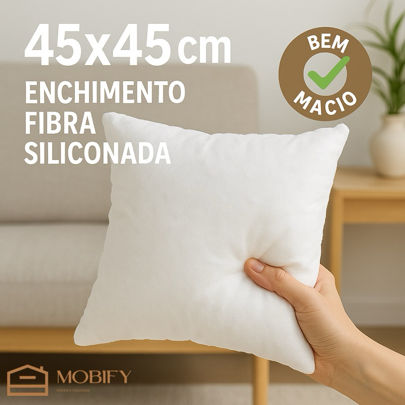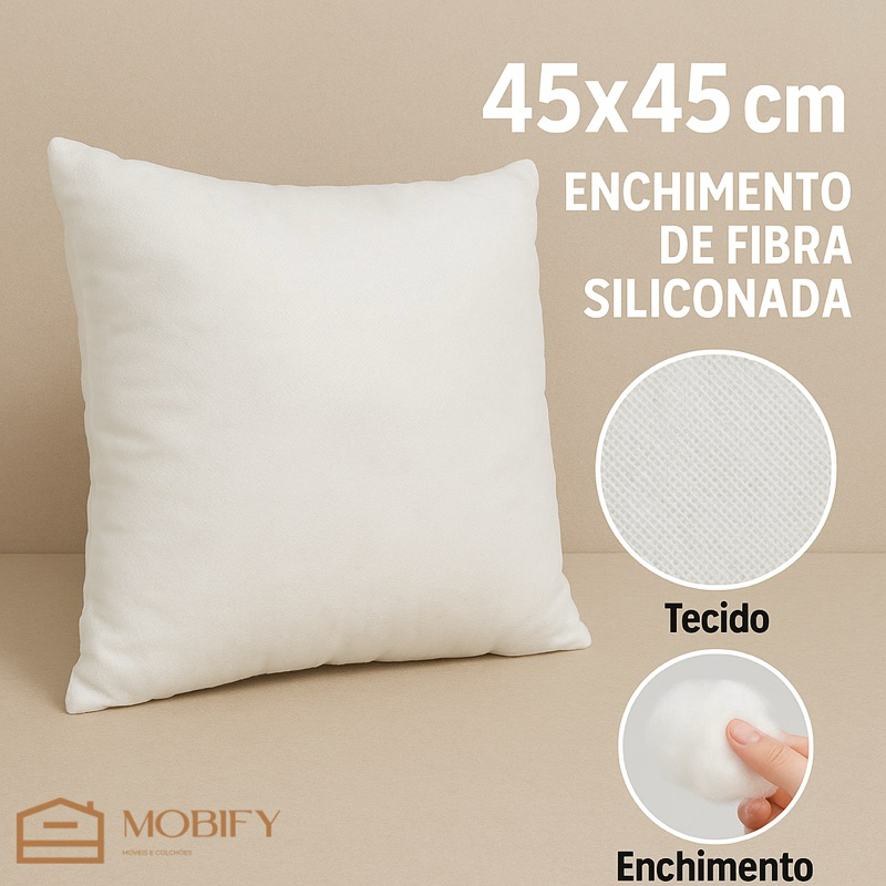 Kit Enchimento para almofada Refil 45x45cm Fibra Siliconada Macio