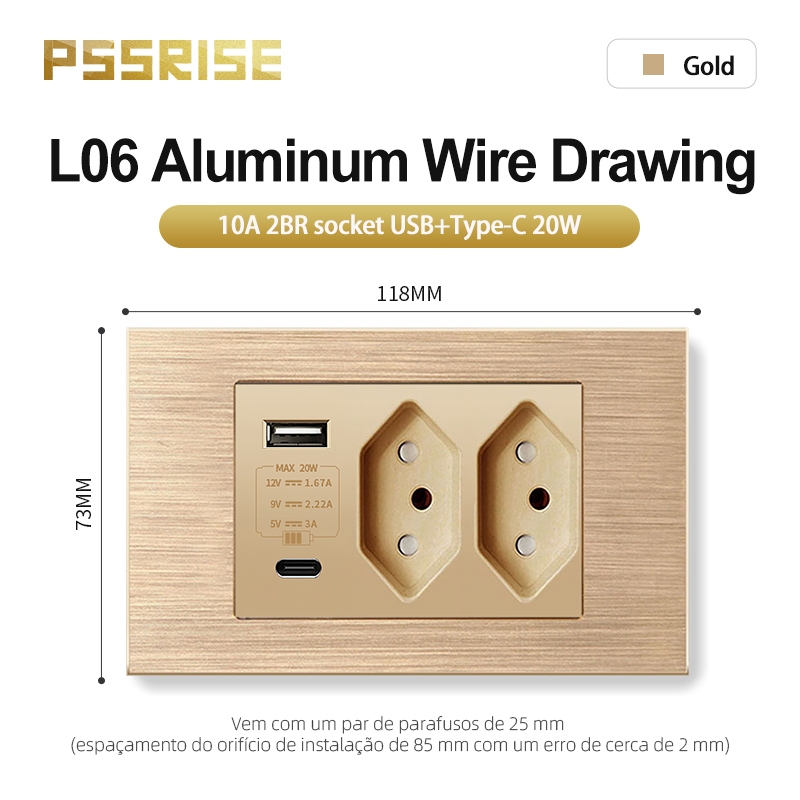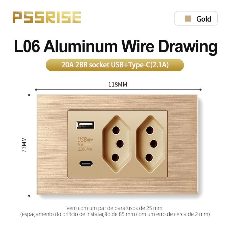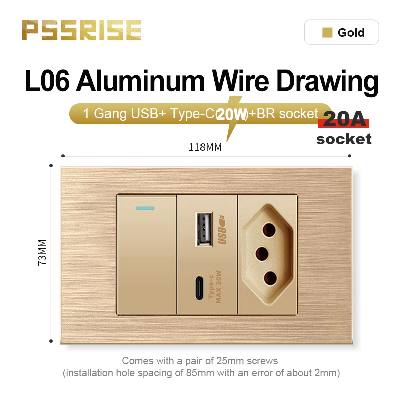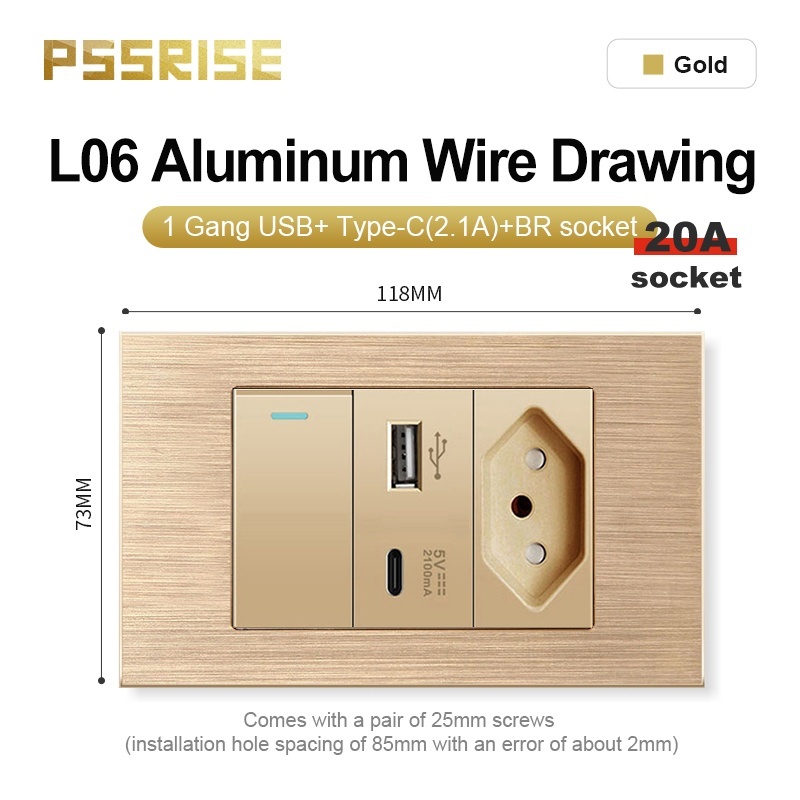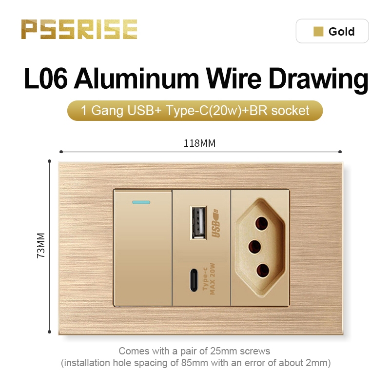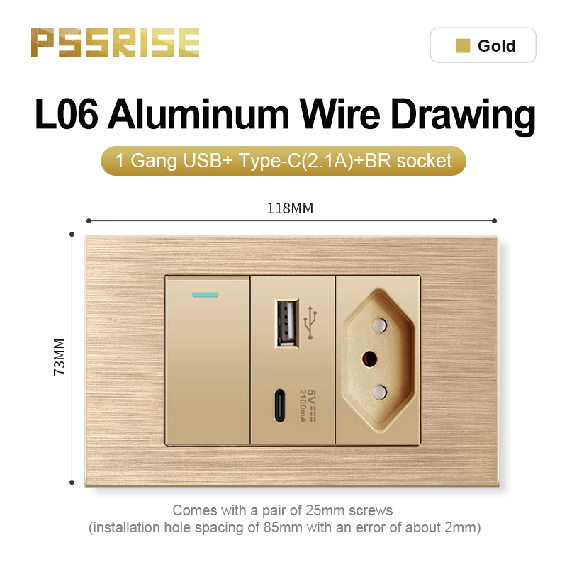 PSSRISE Conjunto De Soquetes De Interruptor De Parede De Alta Qualidade Painel De Alumínio 118 L06