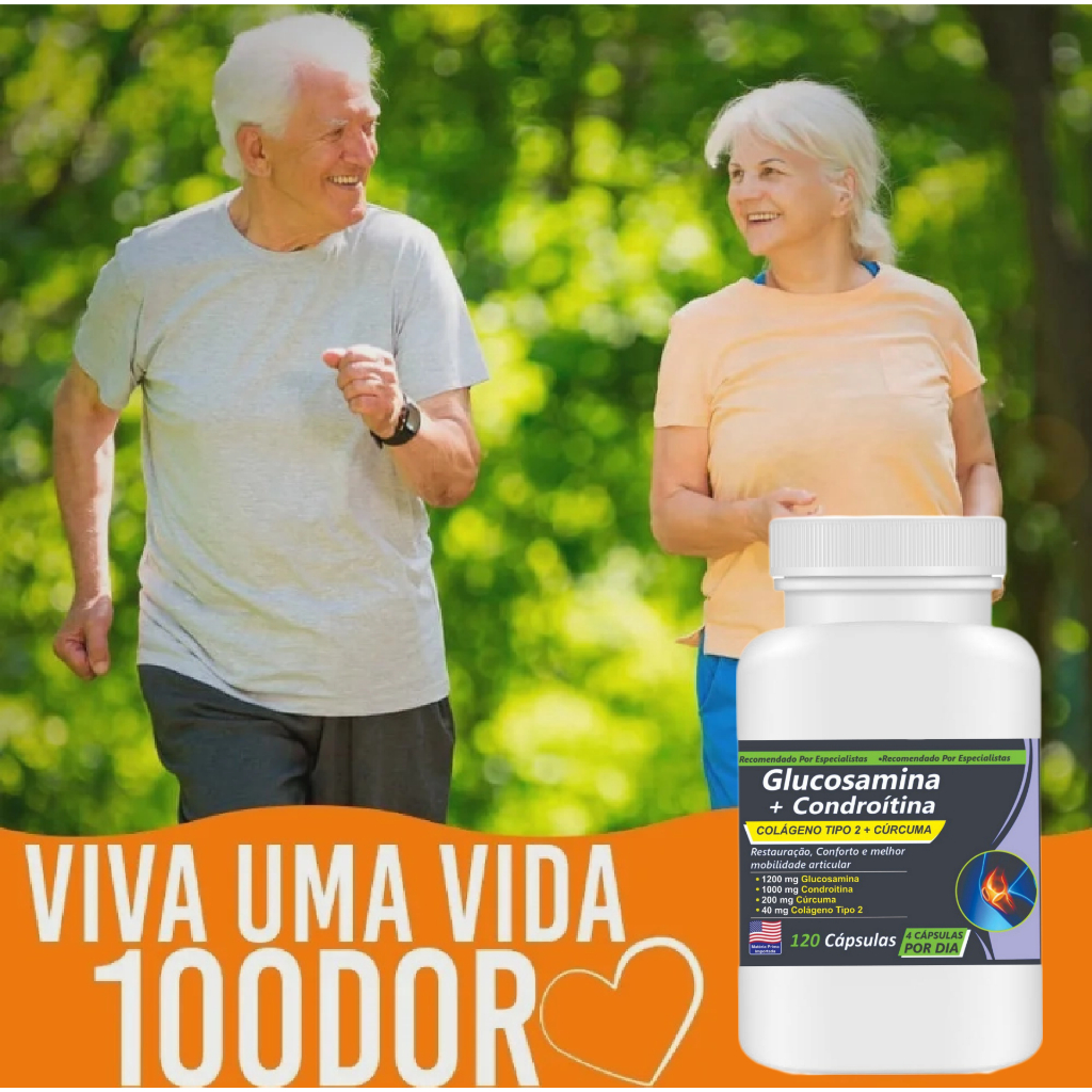 Glucosamina 1200mg e Condroitina 1000mg + Colágeno Tipo 2 - 120 Cápsulas