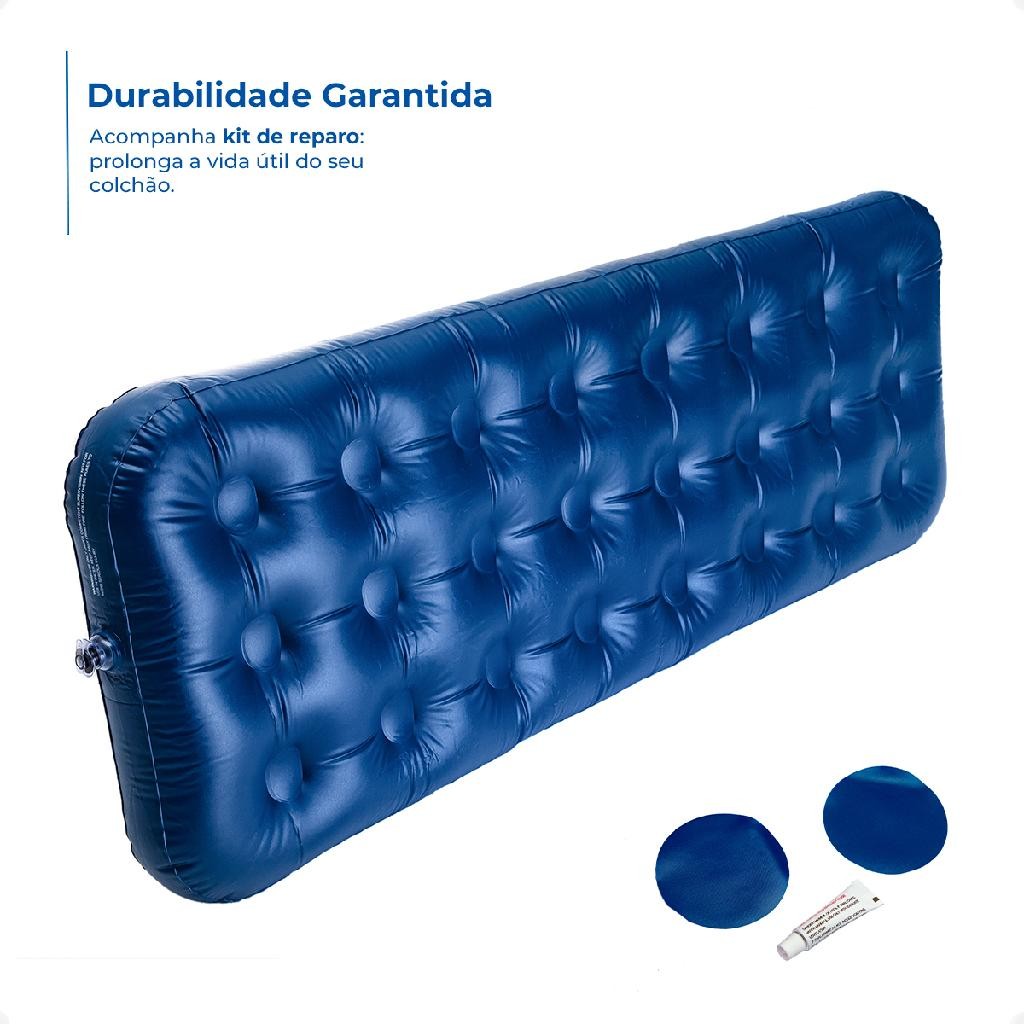 Colchão Inflável Solteiro Aveludada Multiuso Cama Camping Praia Acampamento Viagem + Kit Reparo