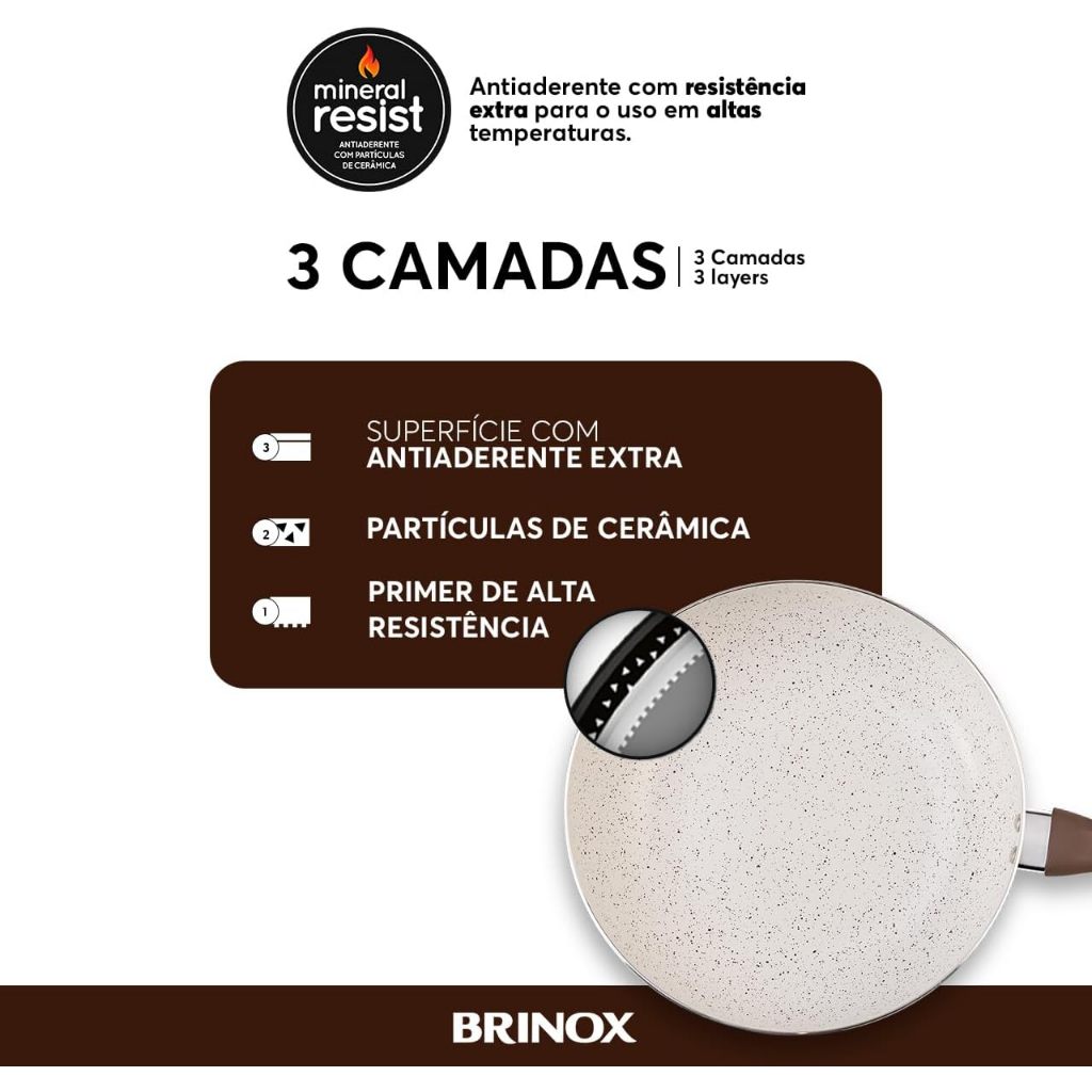 Jogo de Panelas Brinox Smart Ceramic Life 6 Peças Vanilla Antiaderente Fogão Gás Elétrico