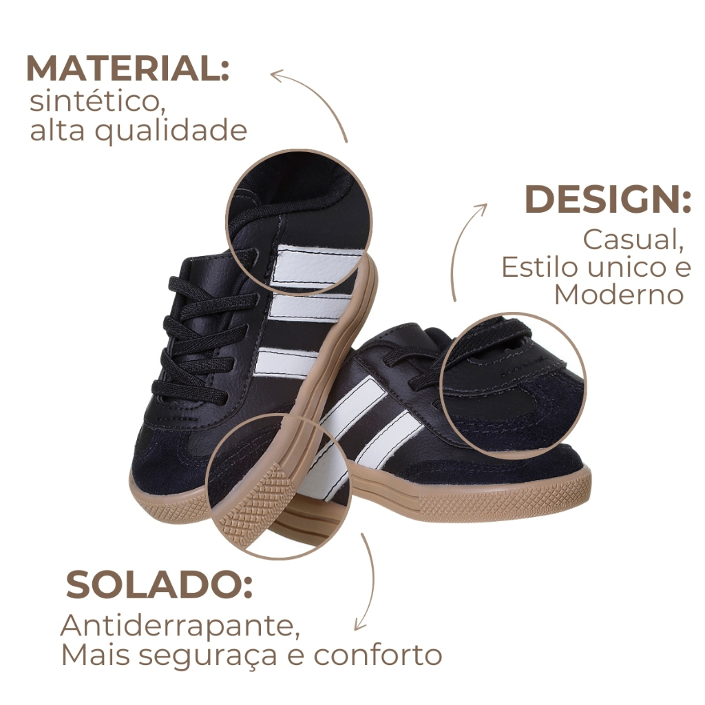Tênis Infantil Unissex Listra Tenis Calce-Fácil Menina Estilo Samba