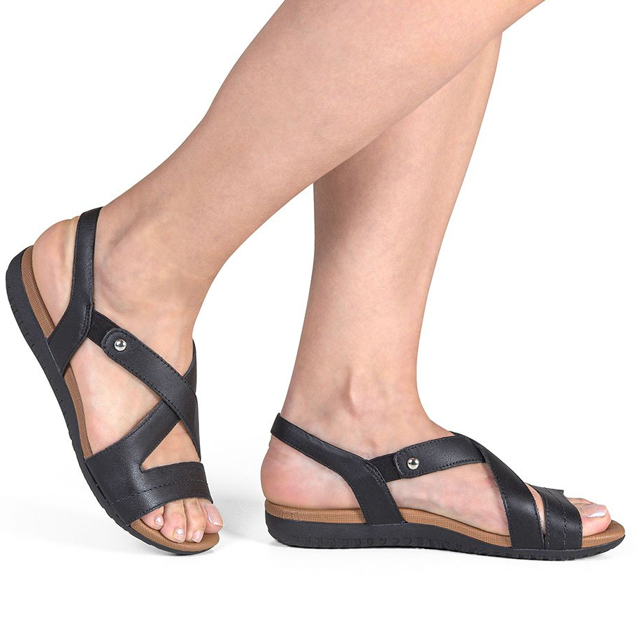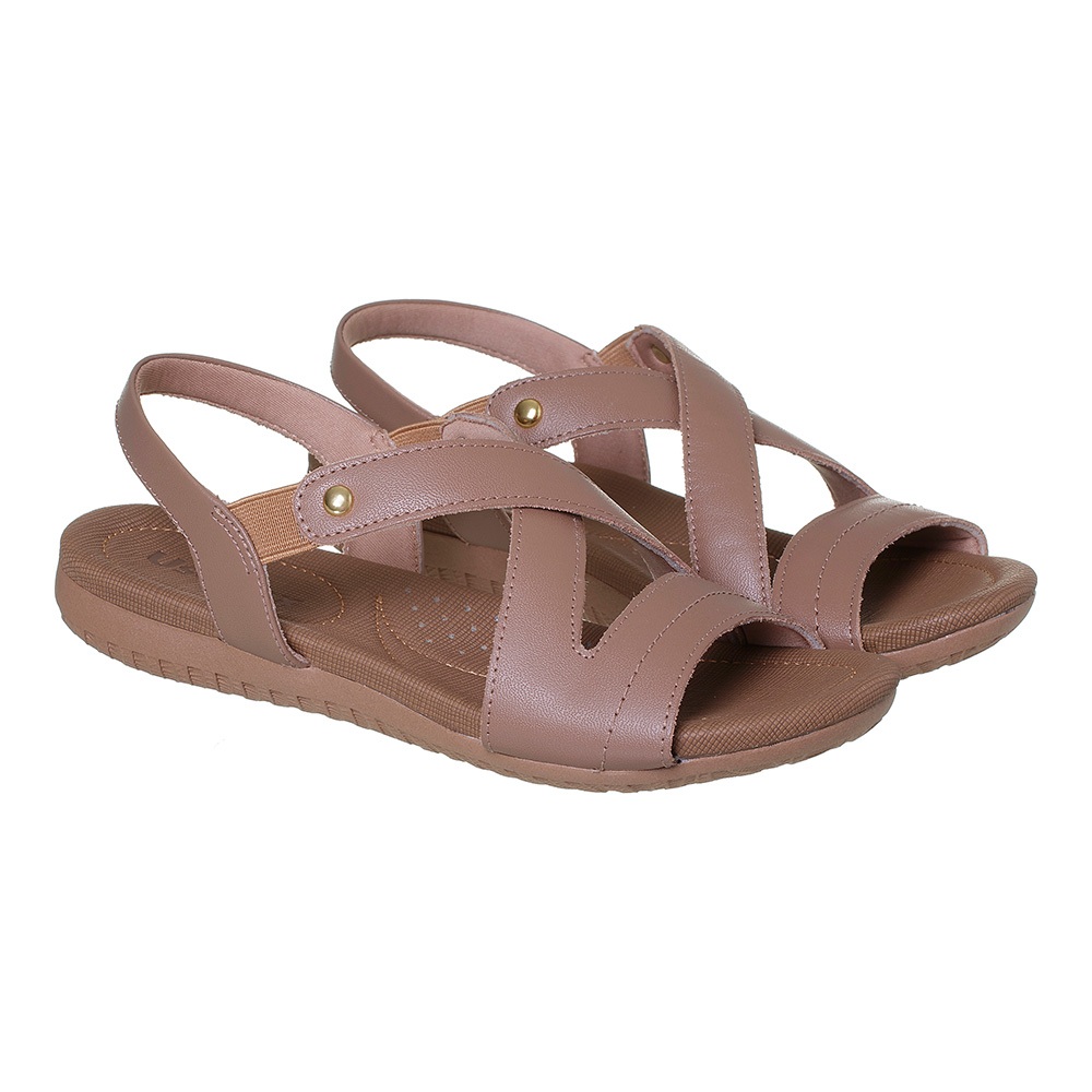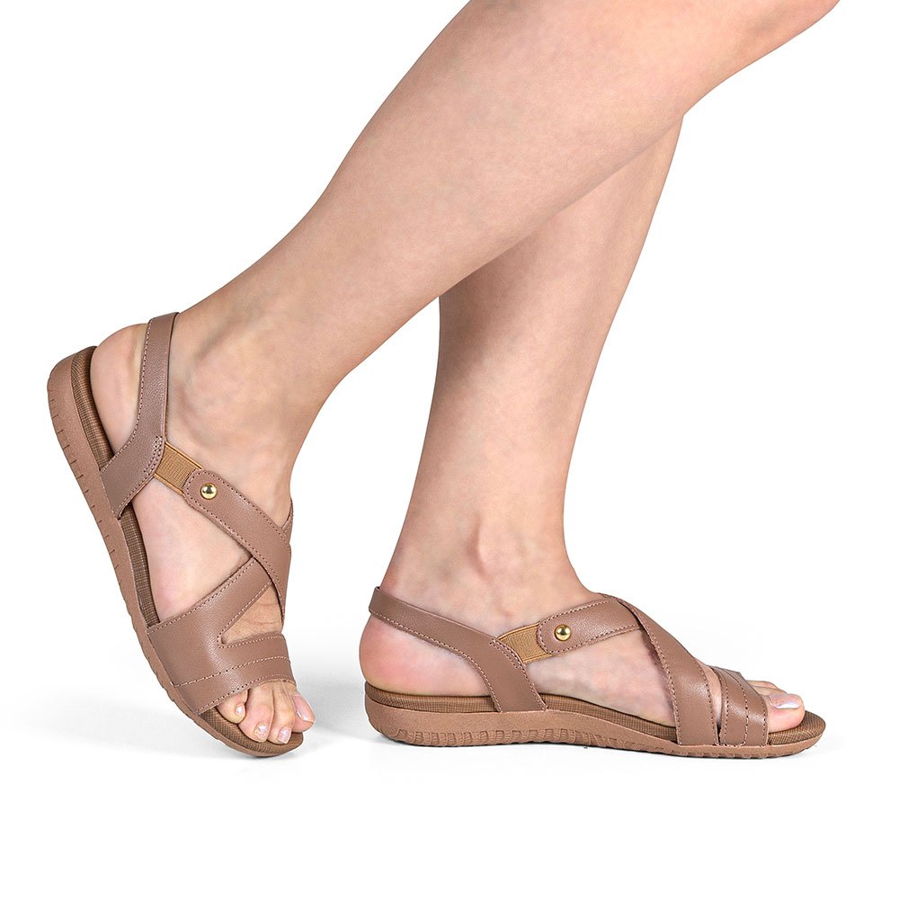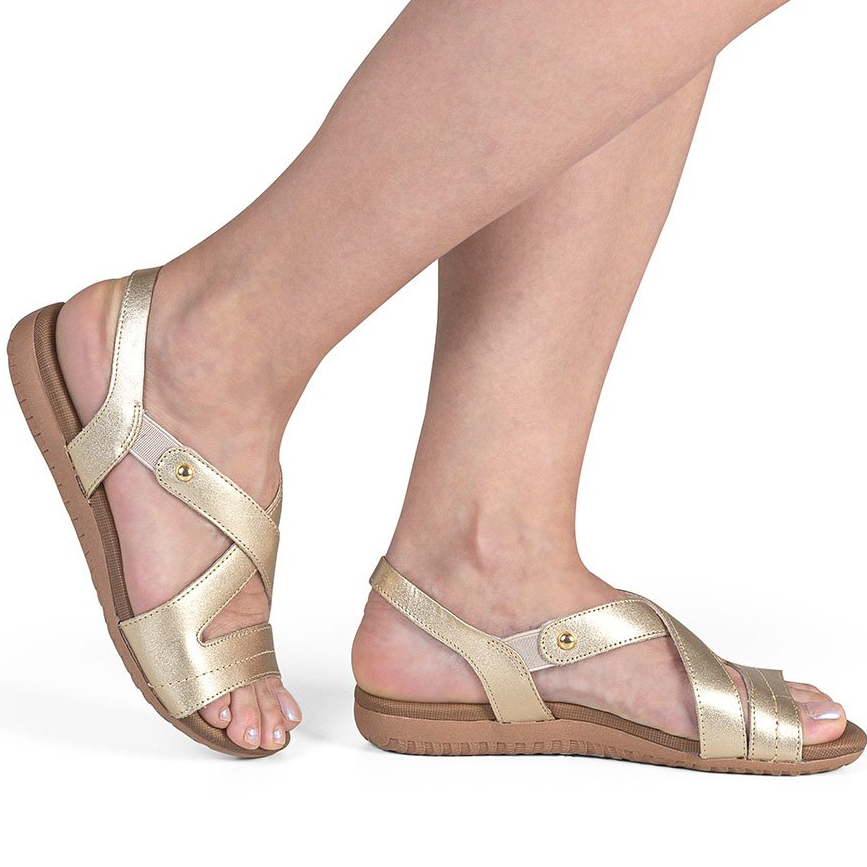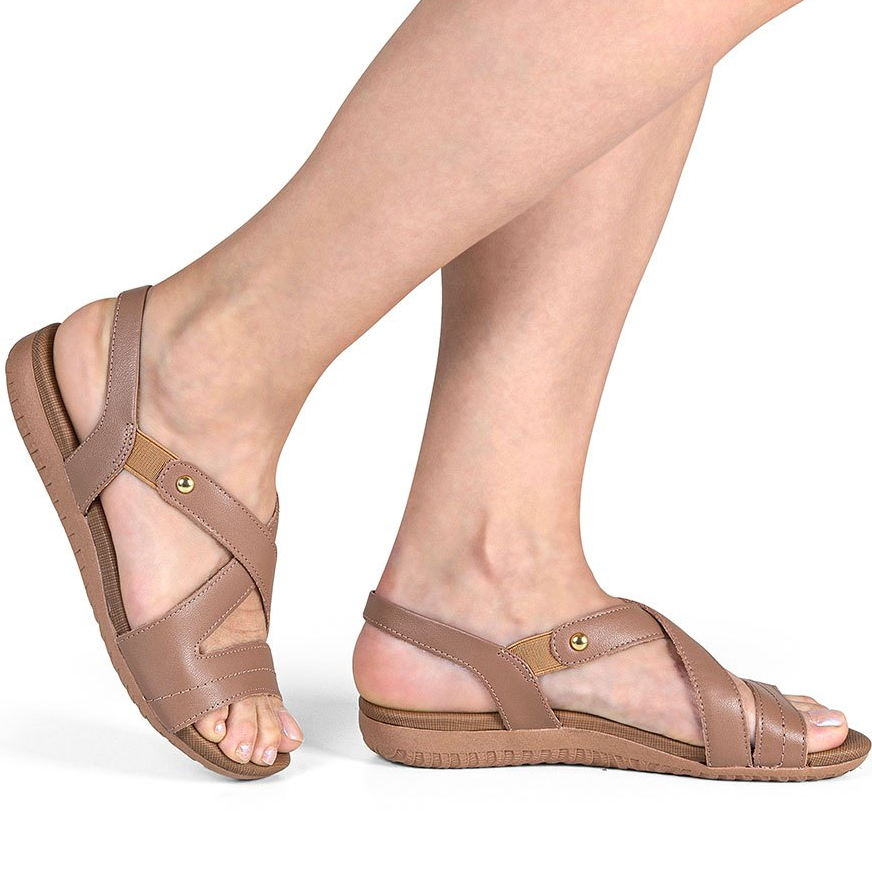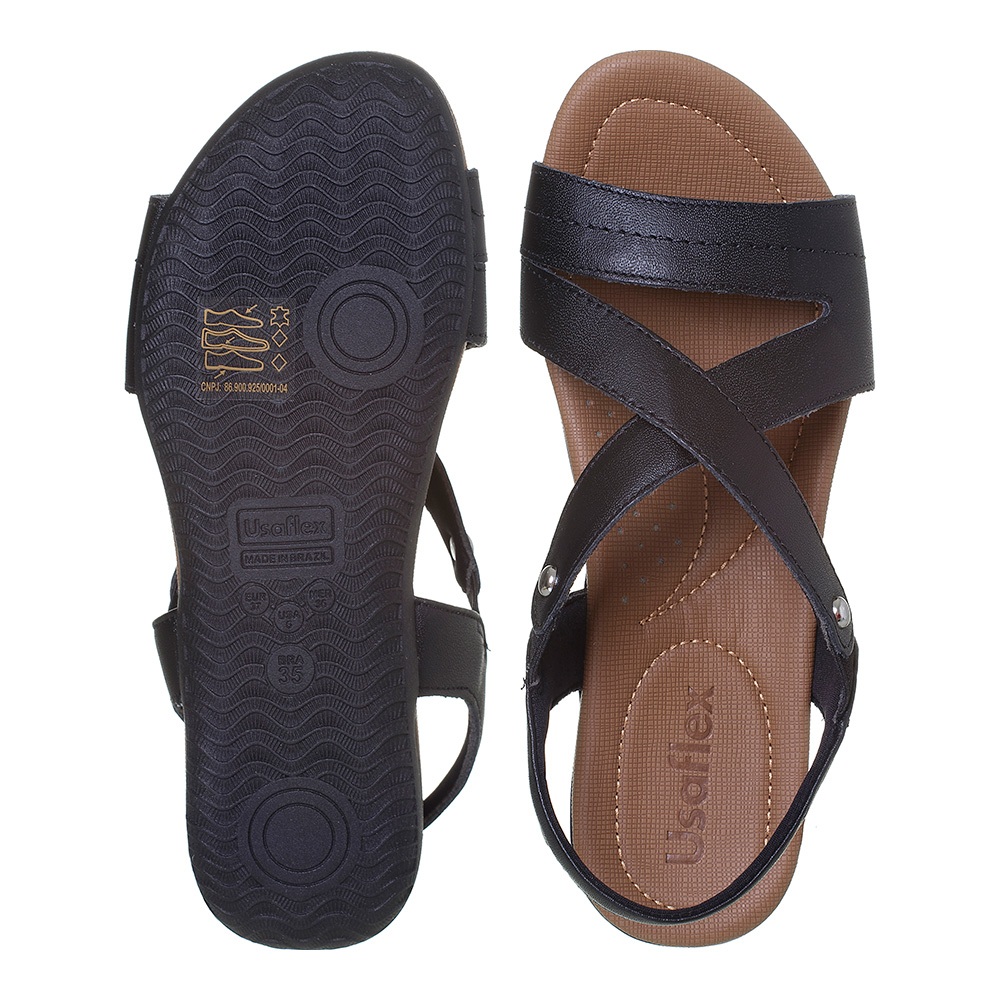 Sandalia Usaflex Rasteira Couro Elastico Ortopedica Feminina