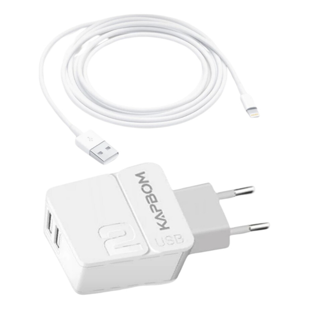 Carregador Turbo Rápido 2 USB + Cabo Lightning p/ iPhone 7 ao 14 Pro Max