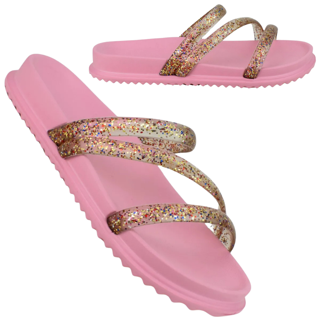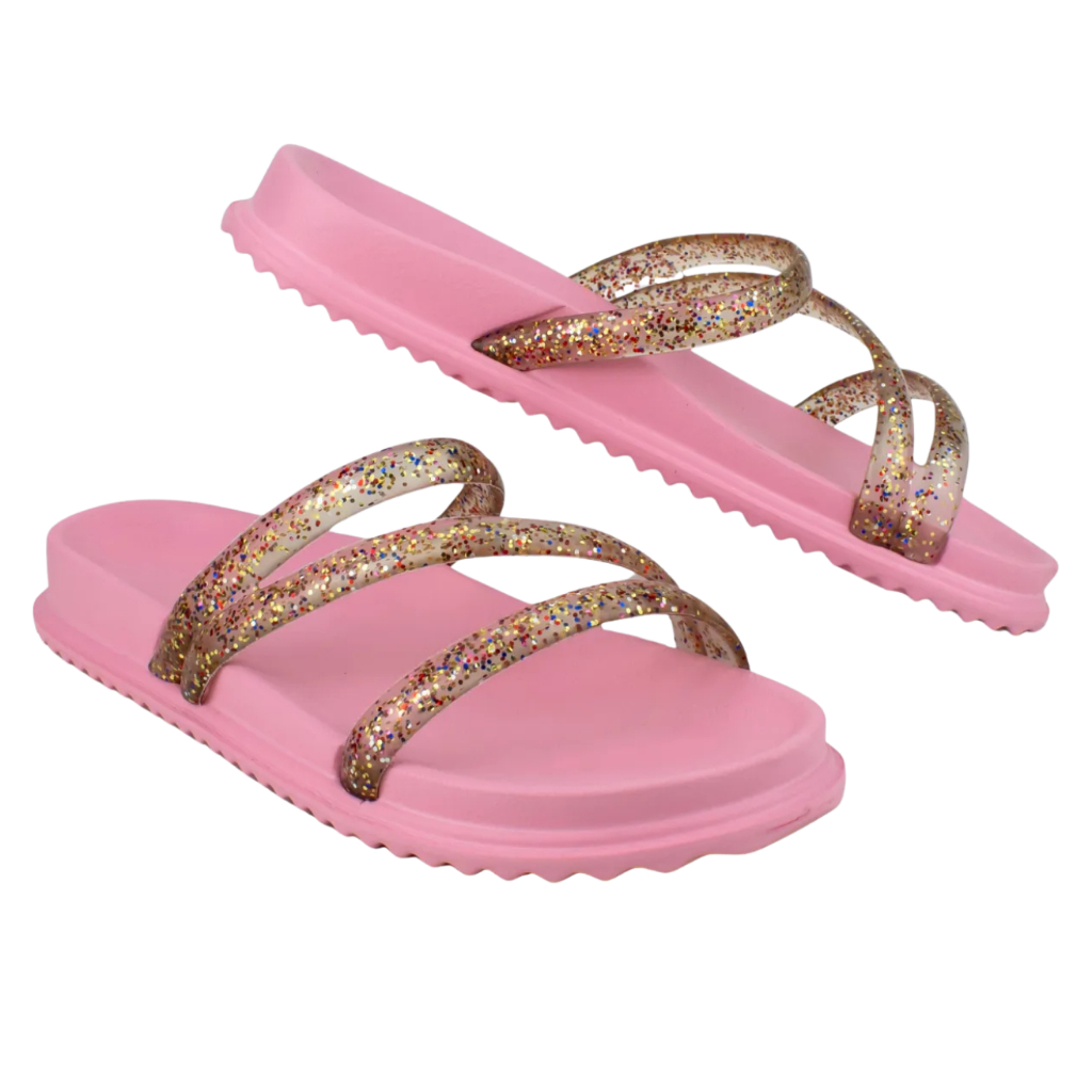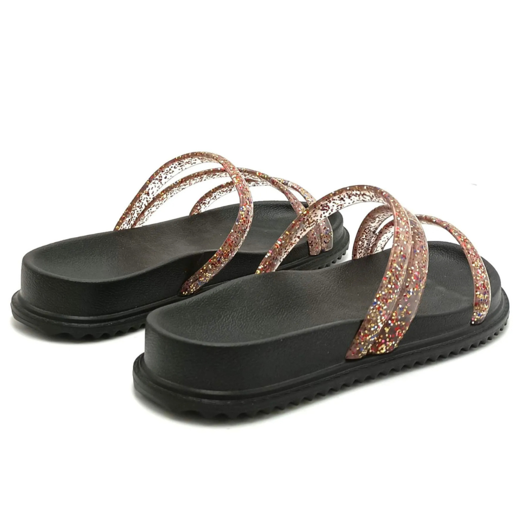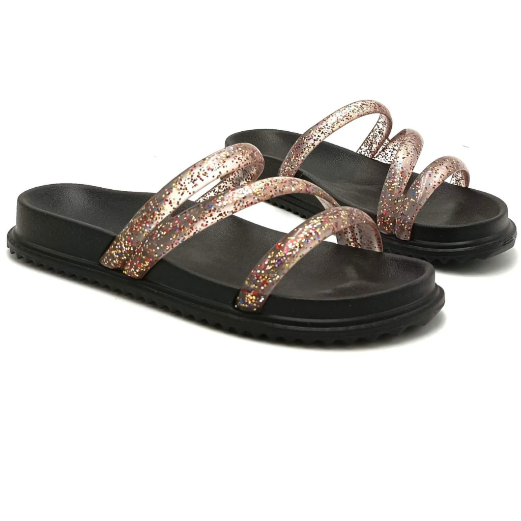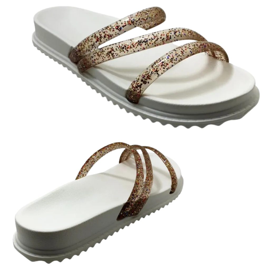 Sandália Feminina Papete Brilho Glitter Confortável Nuvem Macia Slide