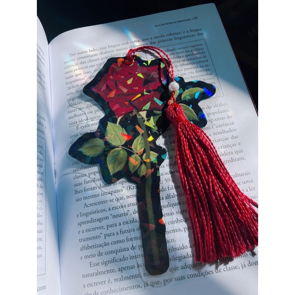 marcador de página rosa vermelha plastificado com tassel com/sem efeito holográfico