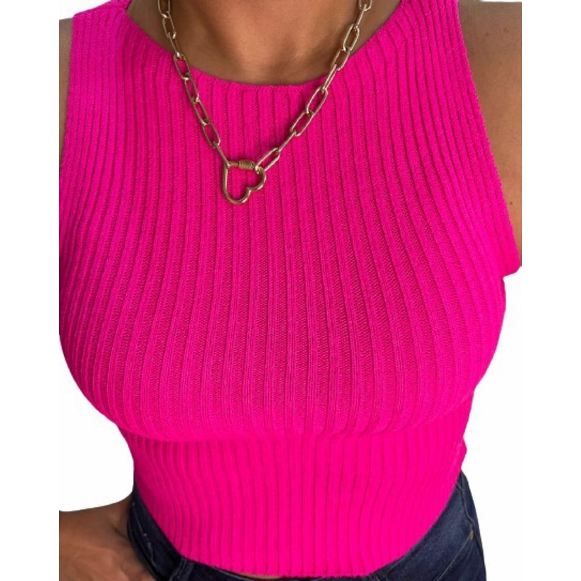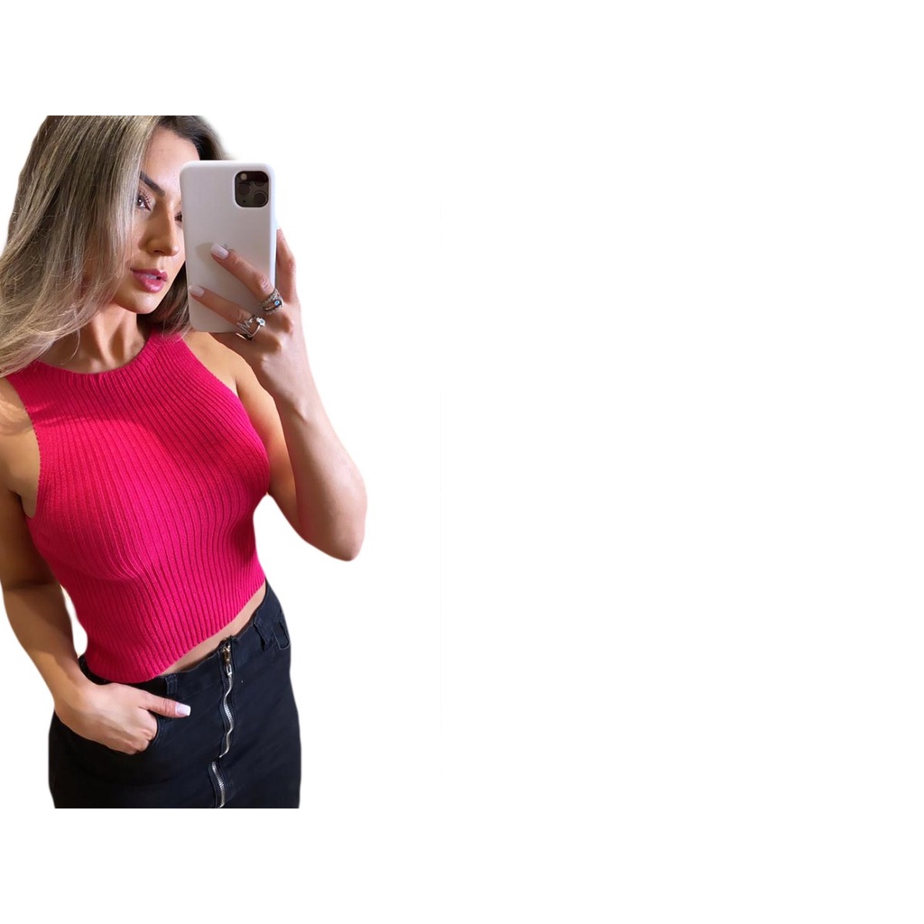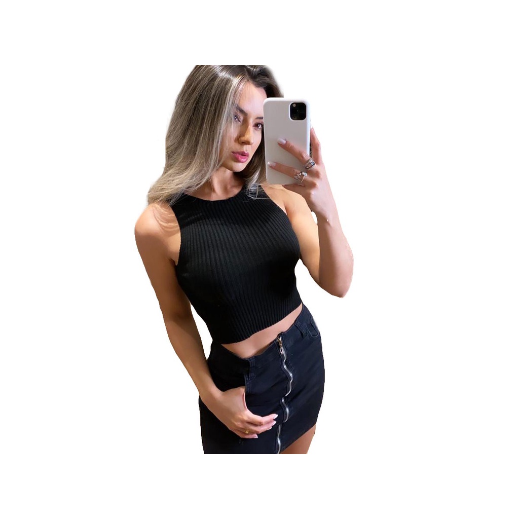 Cropped Regata Tricot Canelada Blusa Social Tendencia Modelo