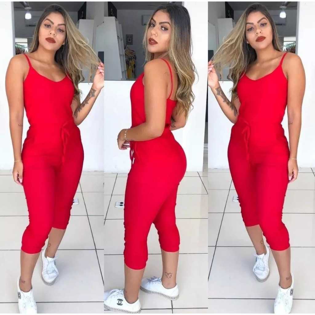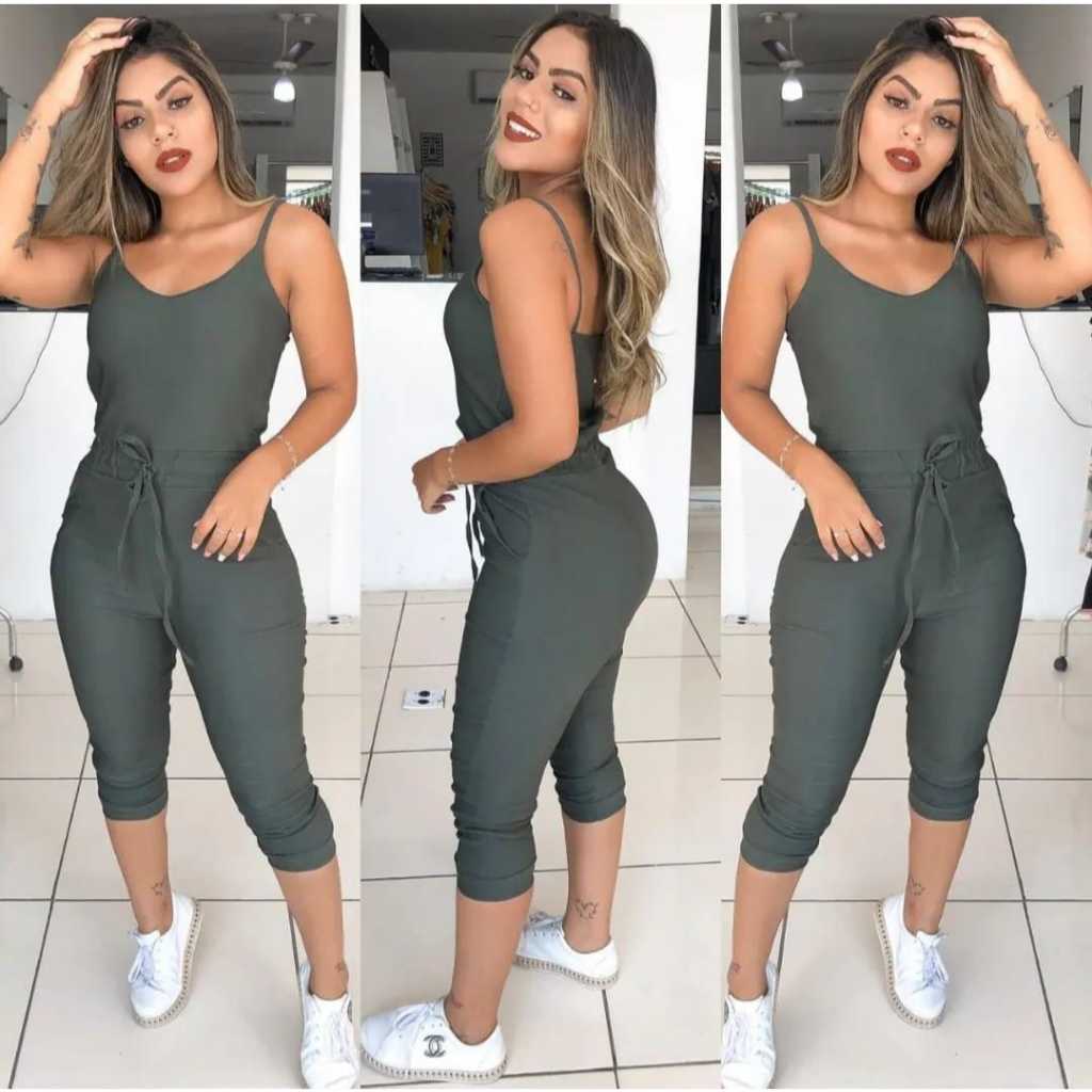 Macacão Jogger de Alça Regulavel Feminino Em Bengaline Com Bojo