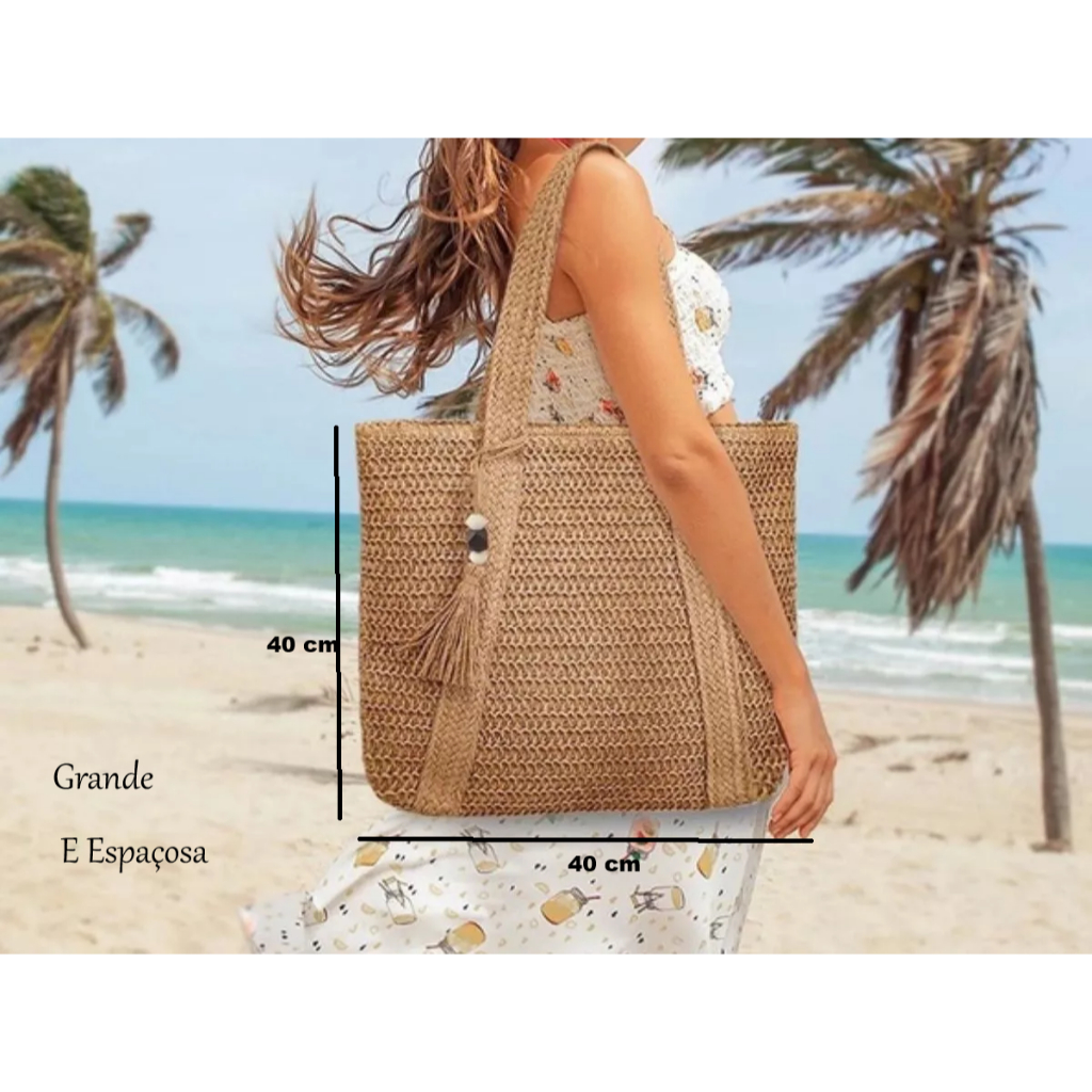 Bolsa Saco Feminina Ombro Grande Moda Praia Piscina Verão Com Pingente