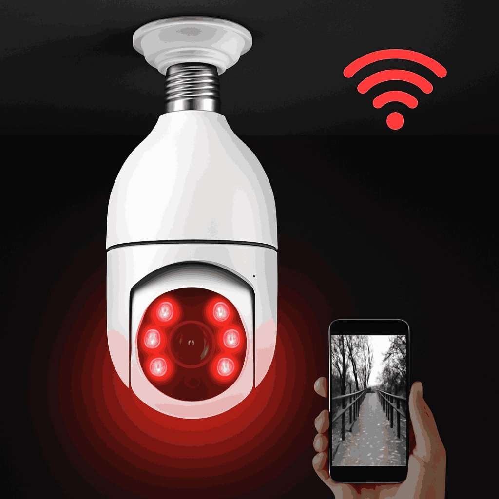 Câmeras Lâmpada 360° ( Selecione quantas ) com Conexão Wi-Fi e Visão Noturna – Controle via Celular
