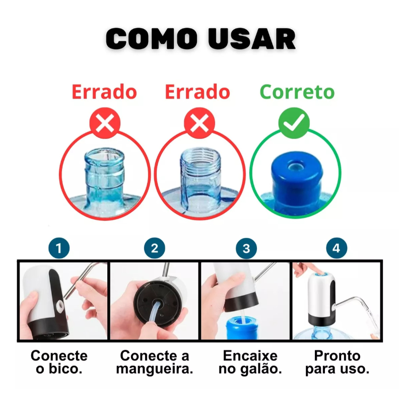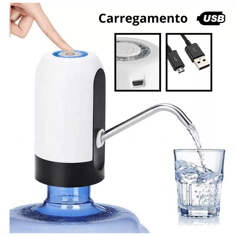 Bomba Elétrica Universal com Carregamento USB para Galão Garrafão de Água