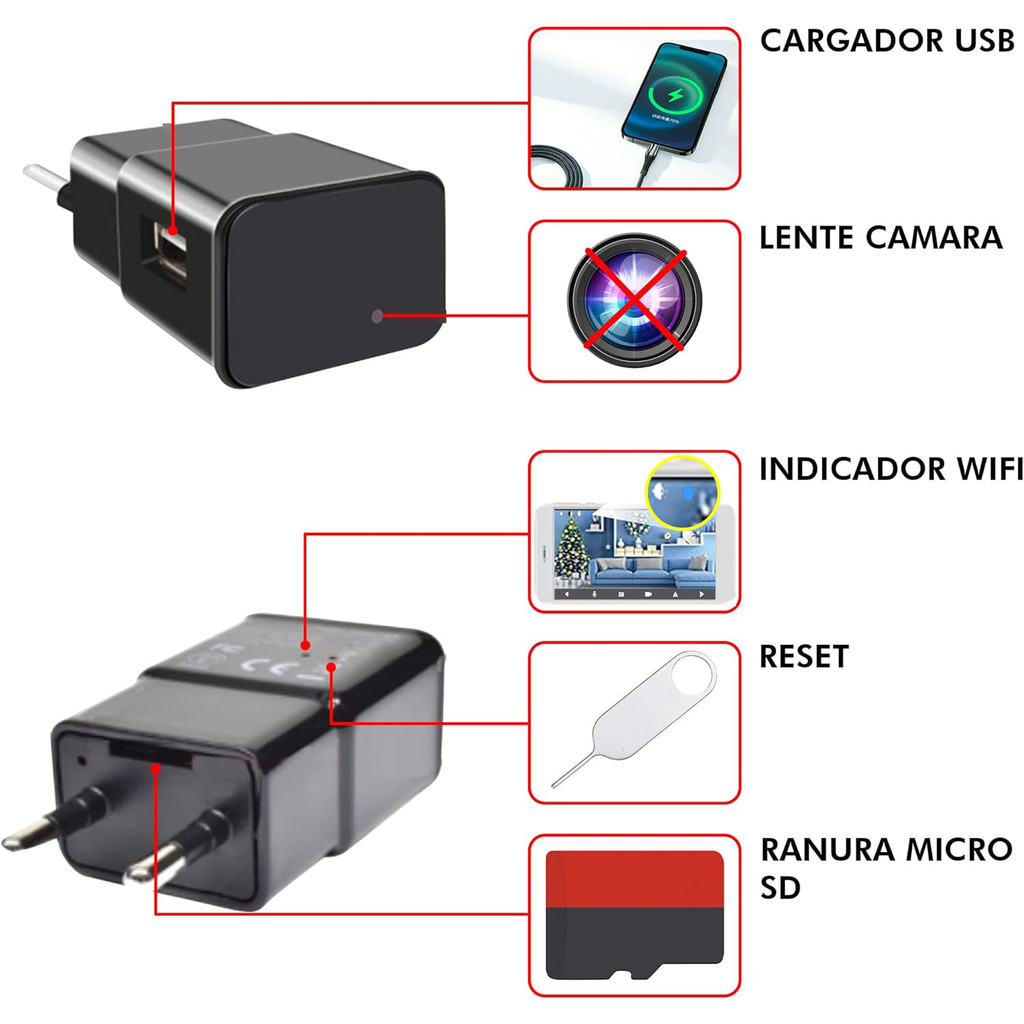 Mini Camera Escondida em Formato de Carregador Tomada Segurança Z15 Wifi Full hd + Cartão de 64gb