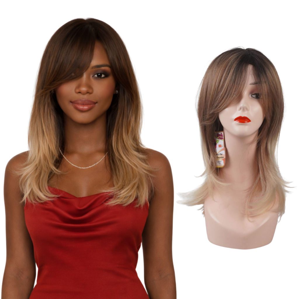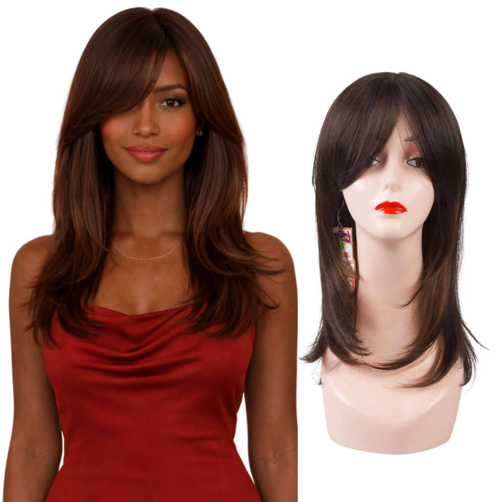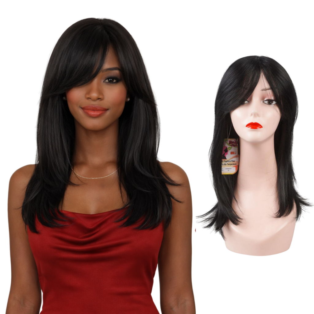 Peruca Organica Ondulada Repicada 50cm Com Franja + Wig Cap