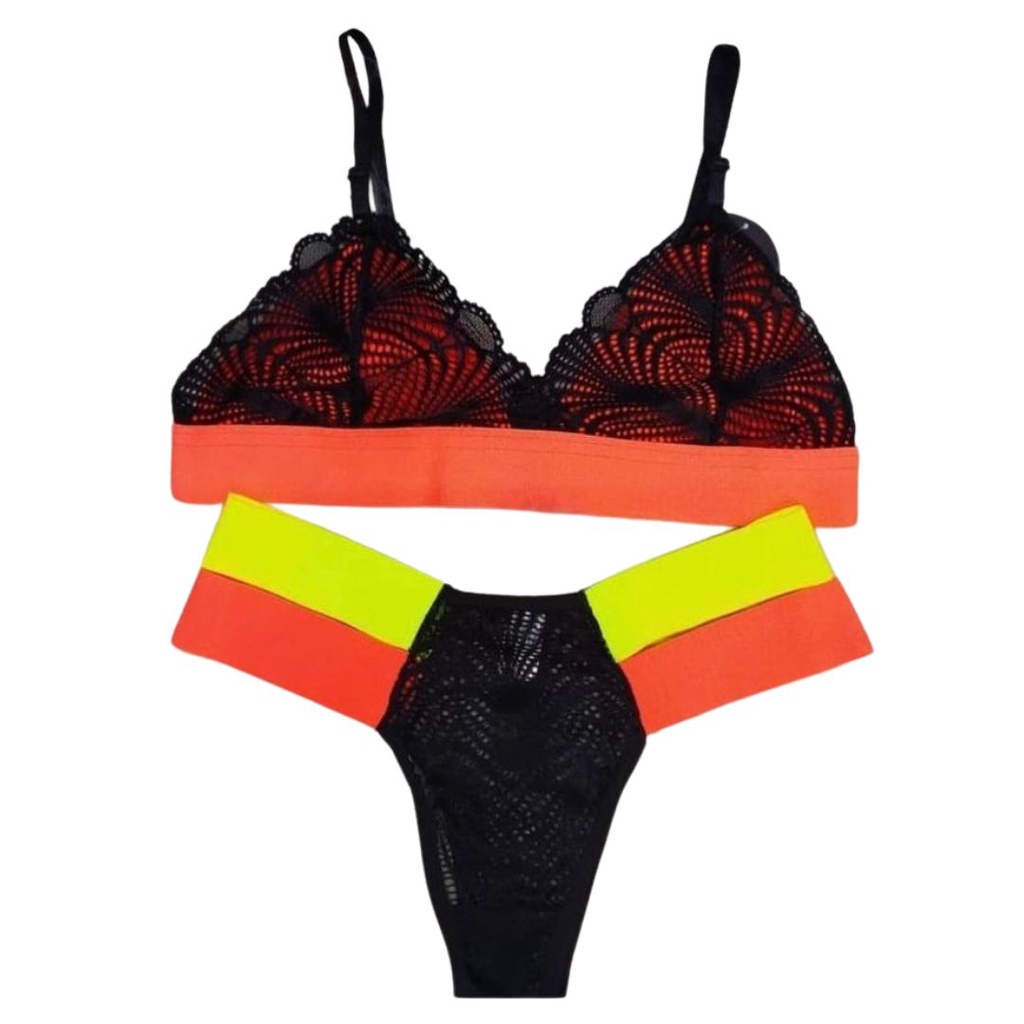 Conjunto Feminino de Sutiã e Calcinha Faixas Elásticas Blogueirinha