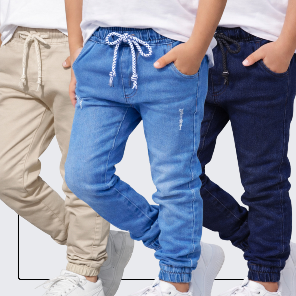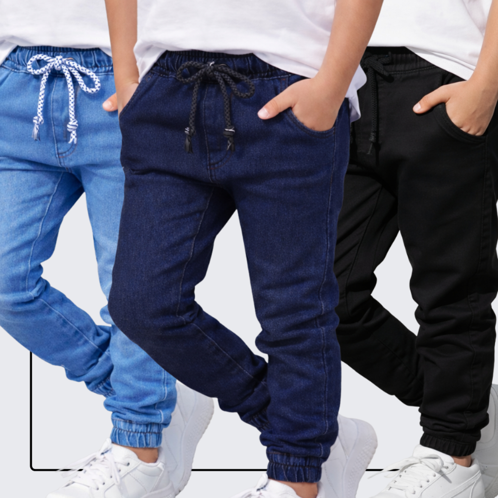 Kit 3 Calça Infantil Jogger Punho Jeans Sarja Menino