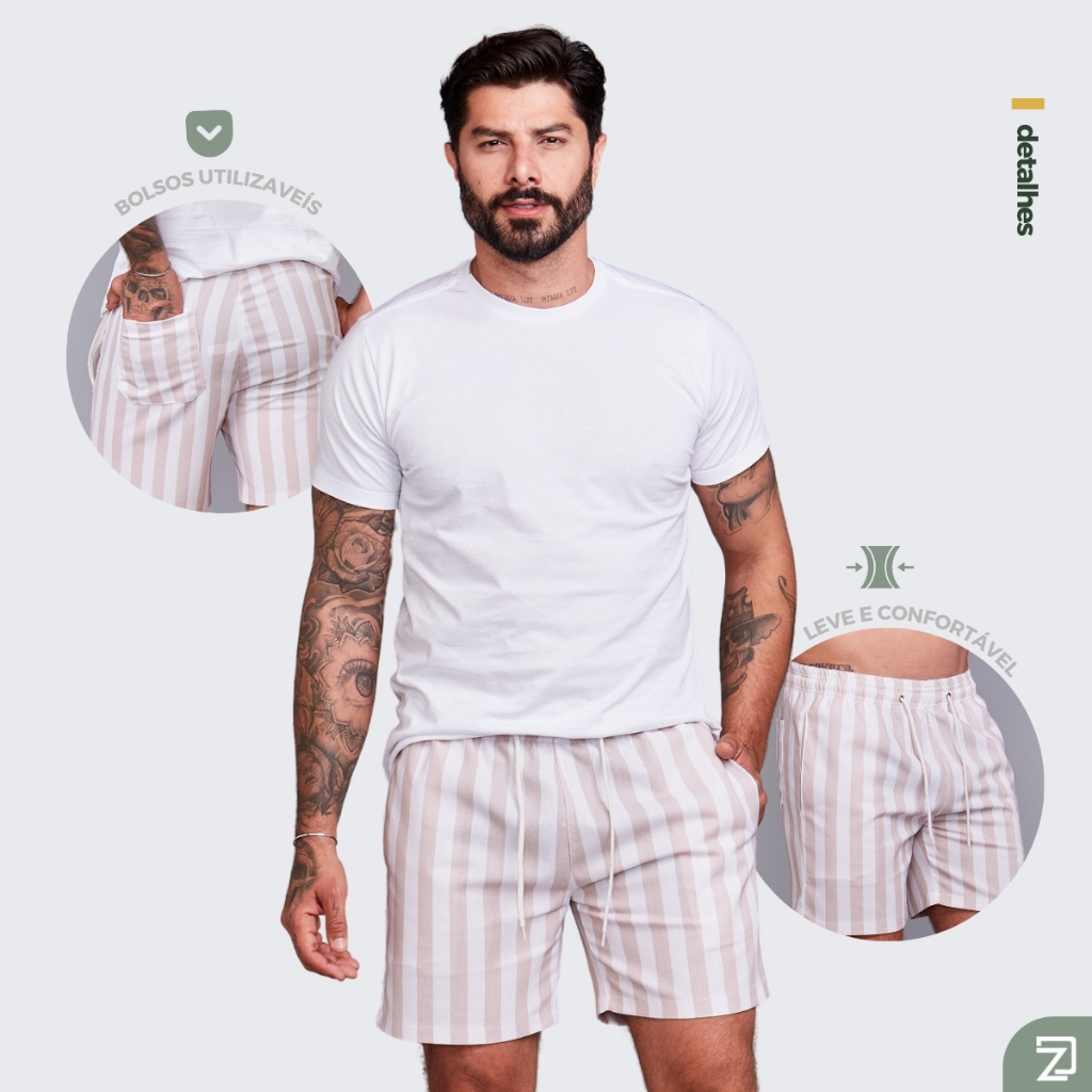 KIT 2 Short Mauricinho Linho Masculino Adulto
