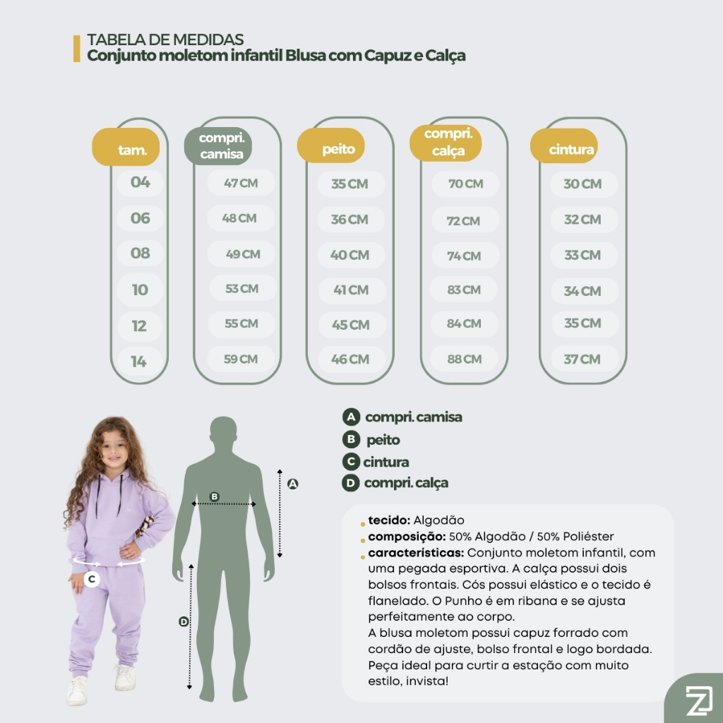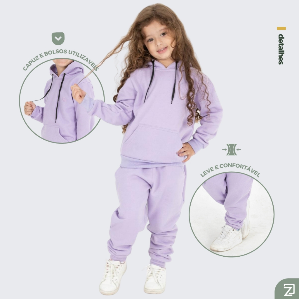 Conjunto Moletom Infantil Menina Calça e Blusa Capuz