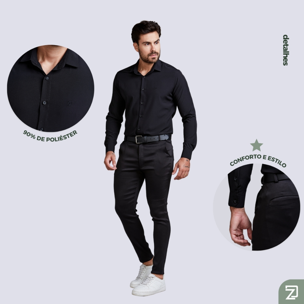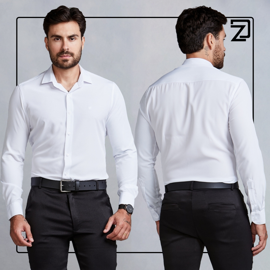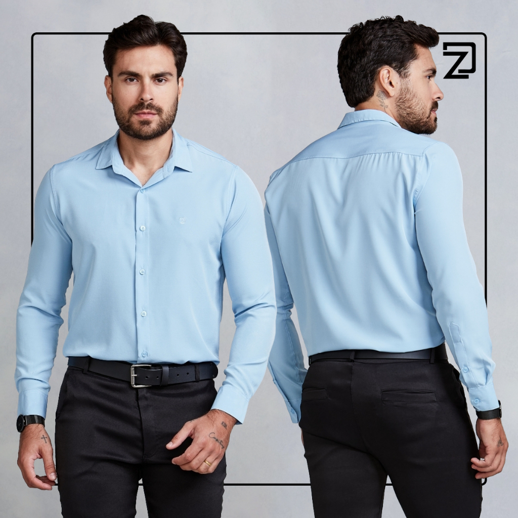 Camisa Slim Social Masculina Spandex