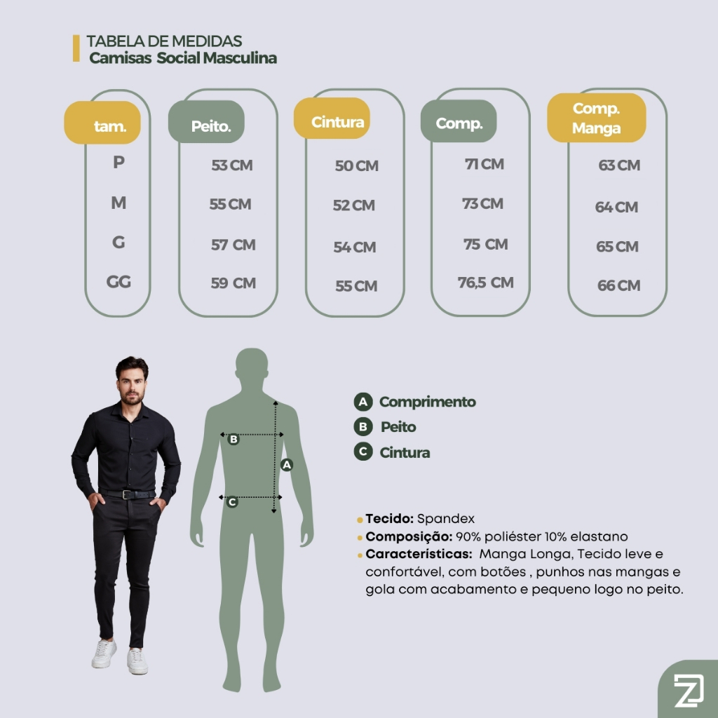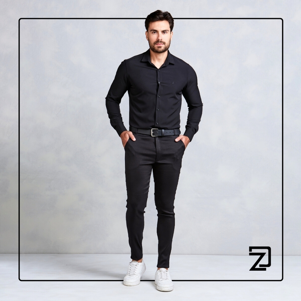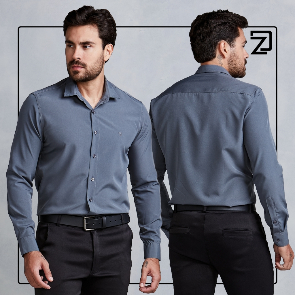Camisa Slim Social Masculina Spandex