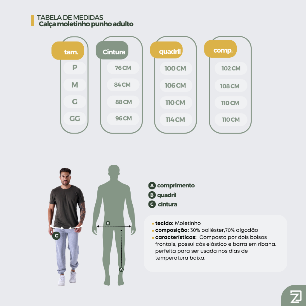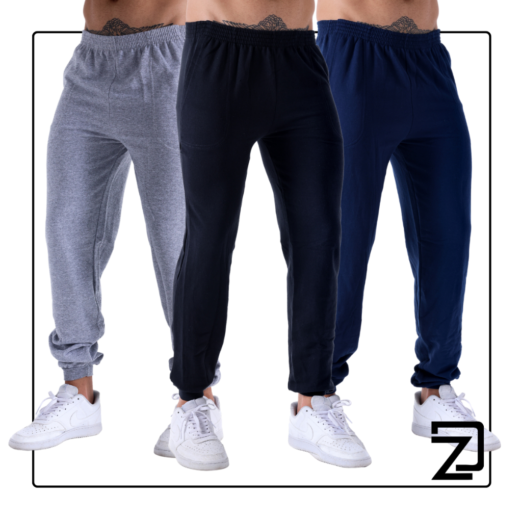 Kit 3 Calça Moletom Masculina e Plus Size Com Punho