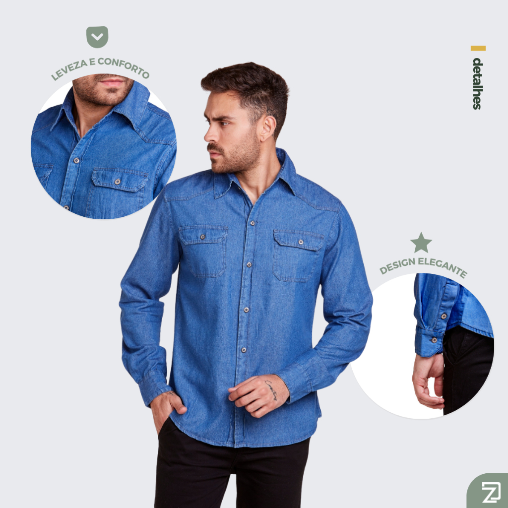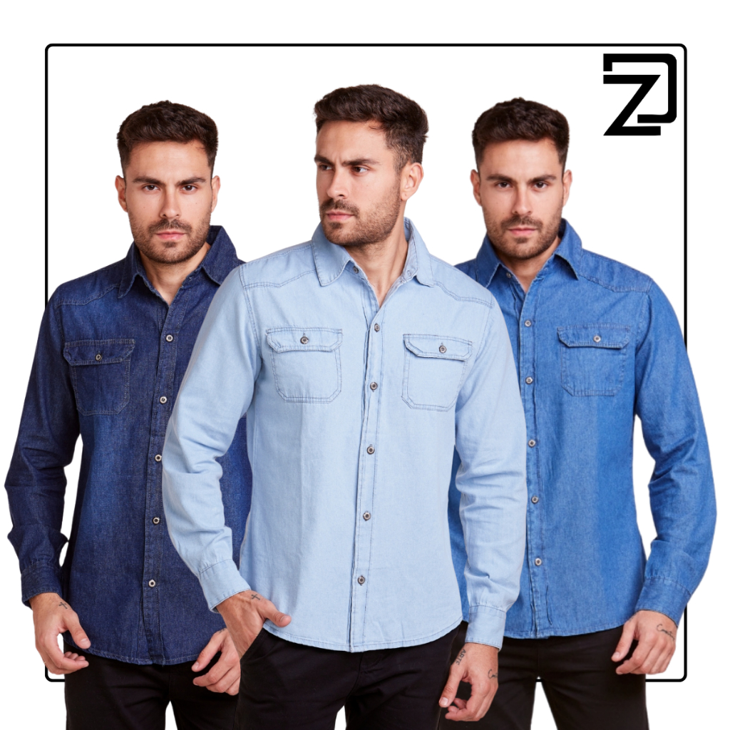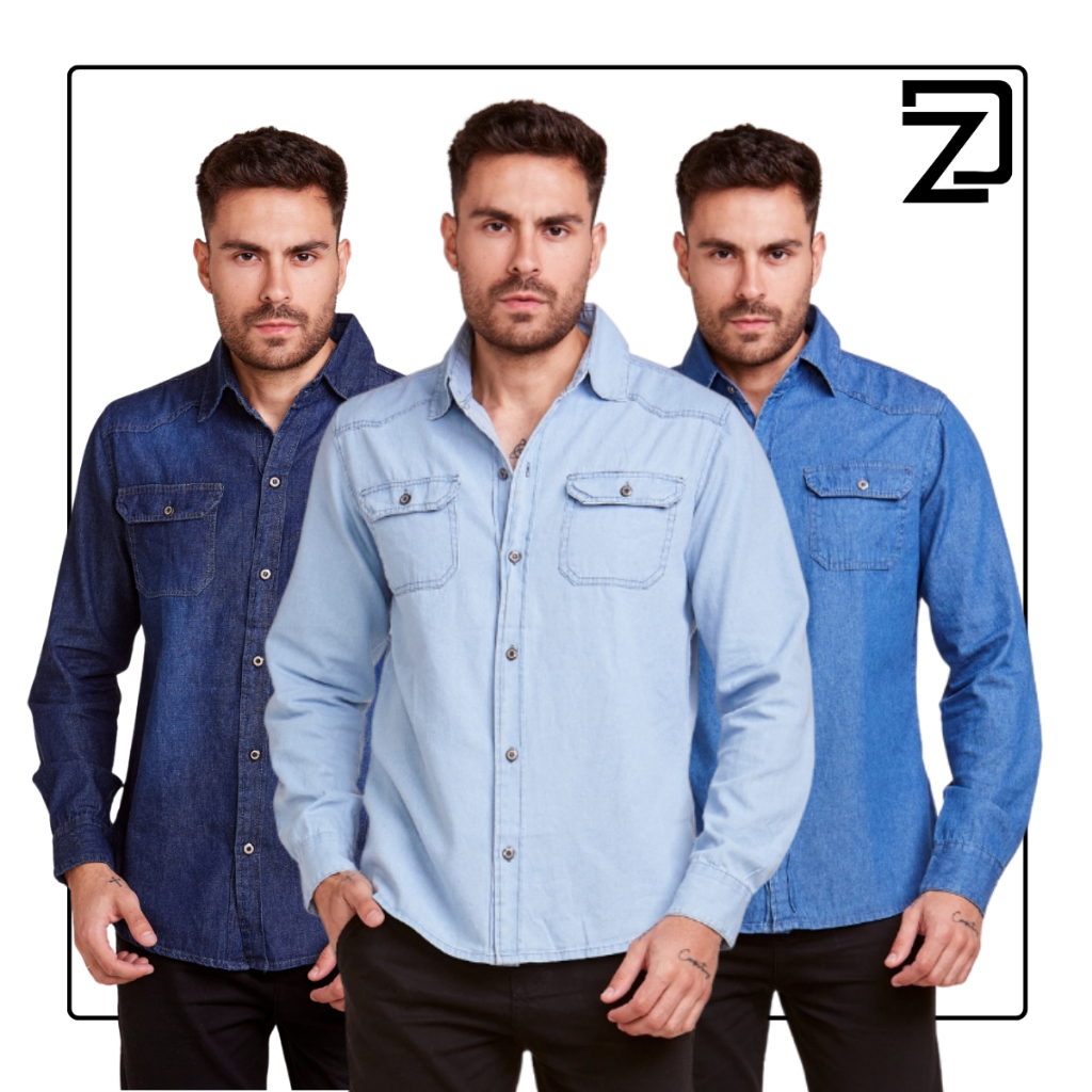 Kit 3 Camisa Masculina Jeans Slim Premium Social