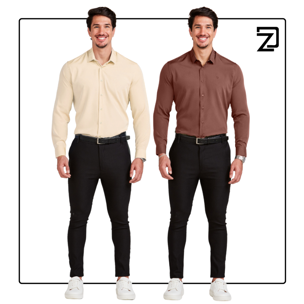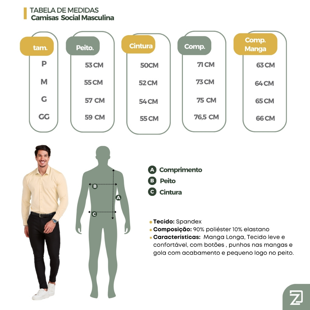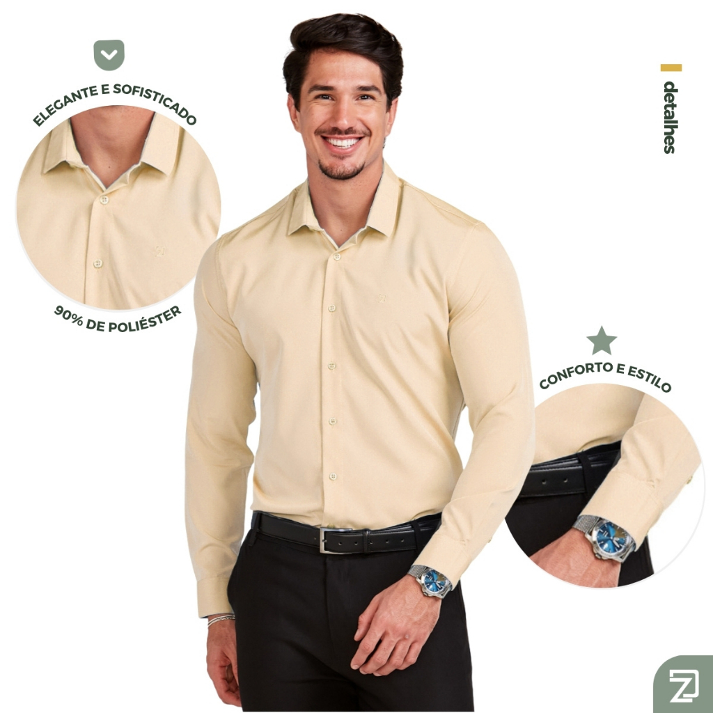 Camisa Social Masculina Slim Manga Longa 3 Peças