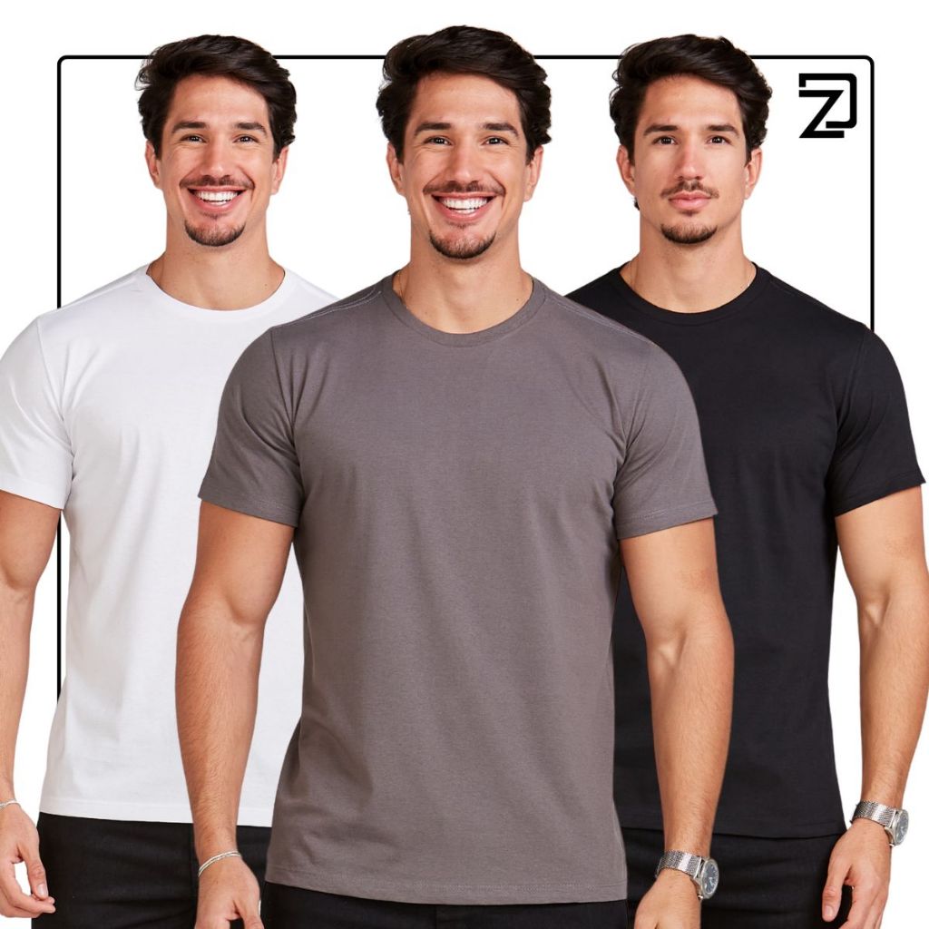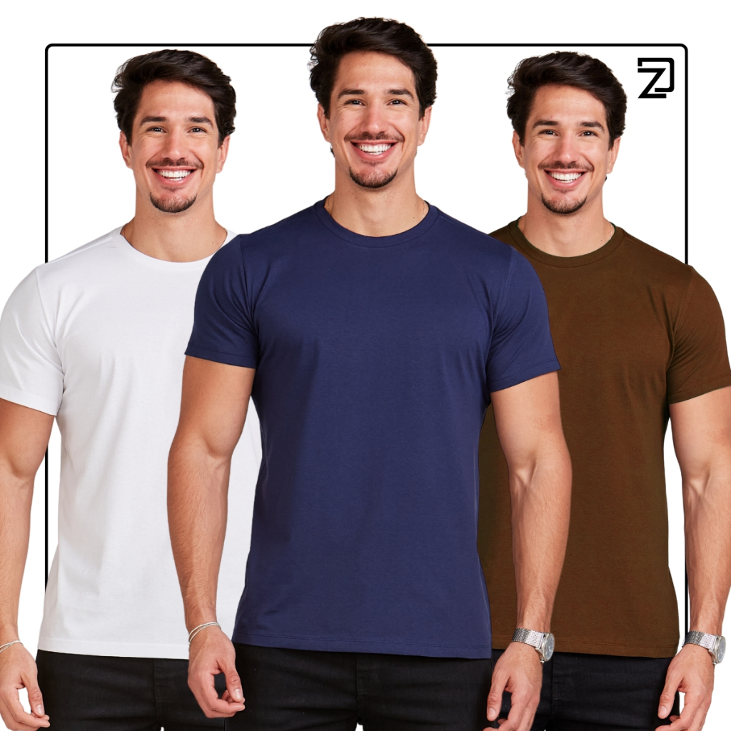 Kit 3 Camiseta Básica Masculina 100% Algodão Premium