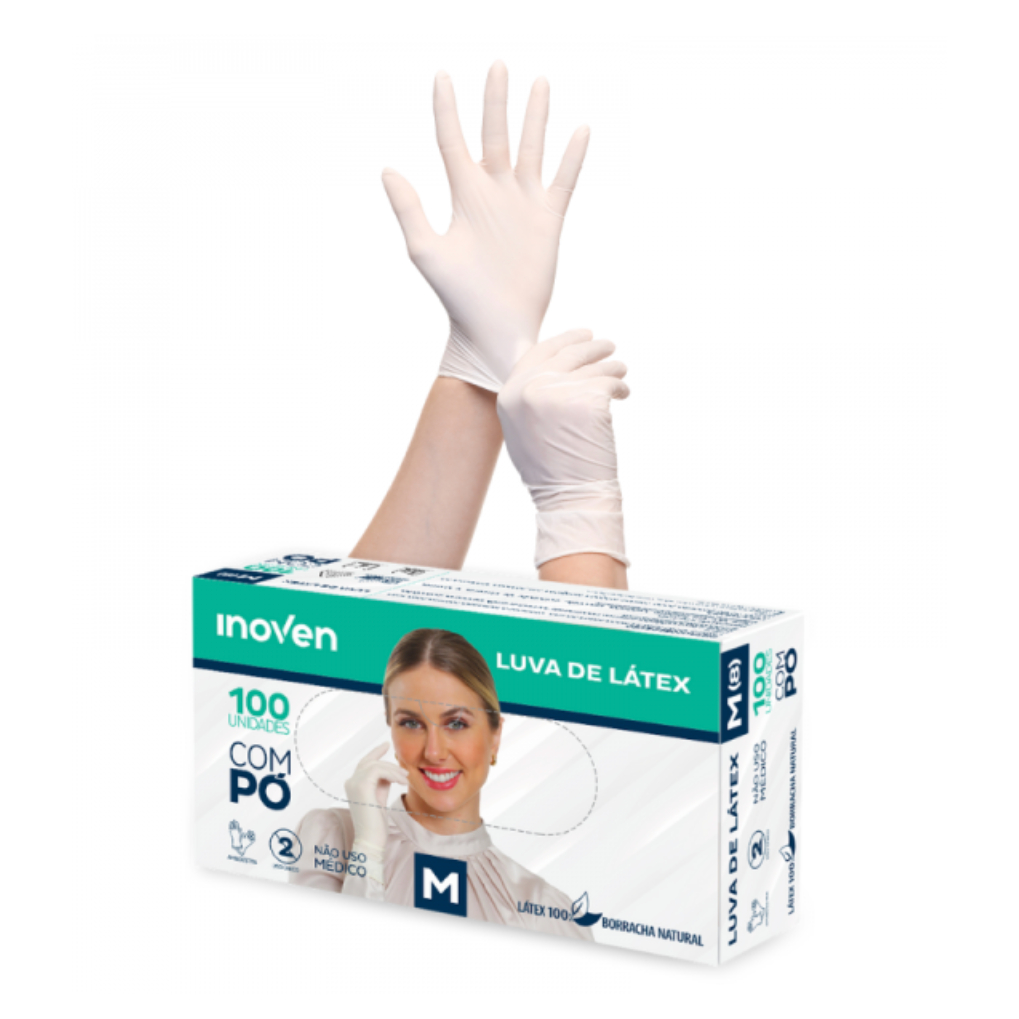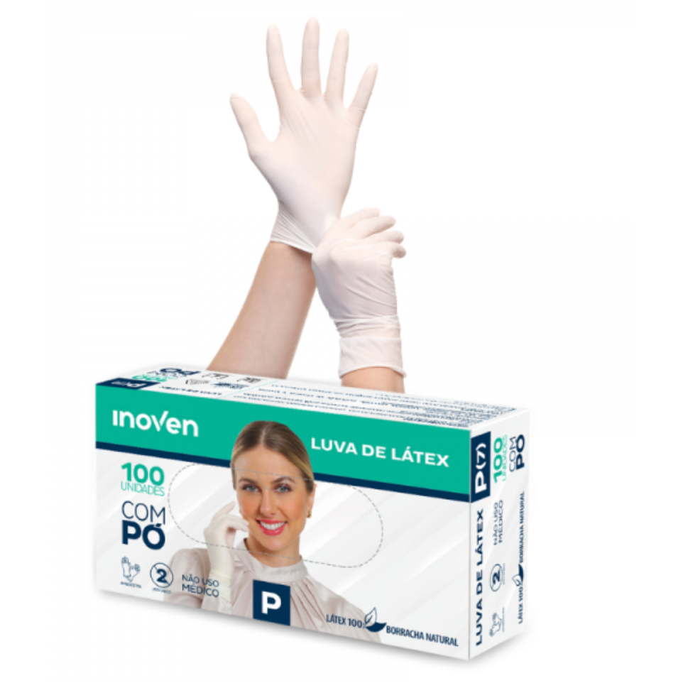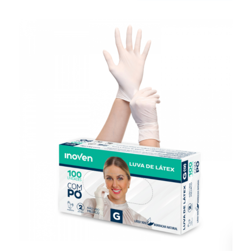 Luvas Descartáveis Latex com Pó Inoven Caixa com 100 unidades