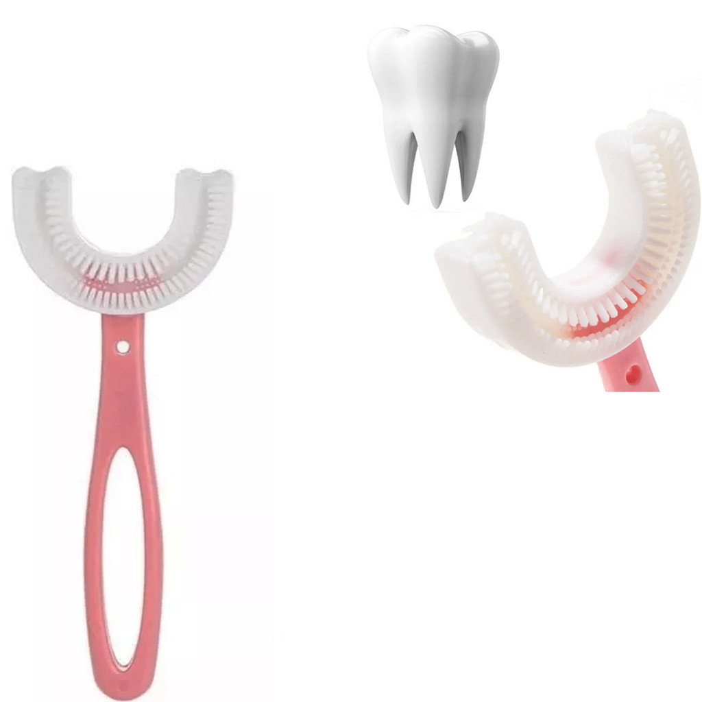 Escova Dental Infantil 360 Graus Anatômica Silicone Limpa Não Machuca Gengiva dentes limpos formato