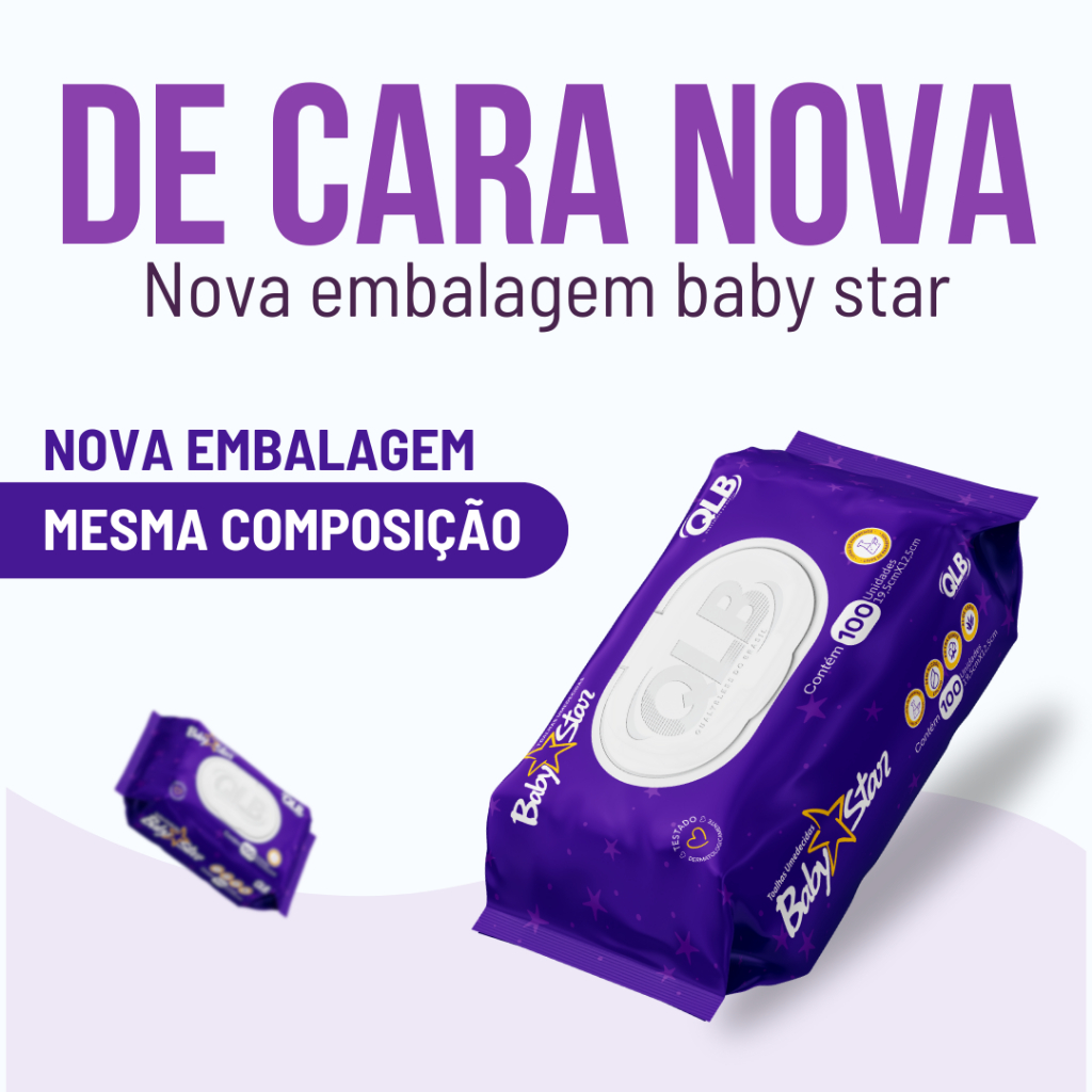 Caixa com 6 Lenços/Toalhas Umedecidas Baby Star Roxa c/ 100 Unidades Cada – Tampa FlipTop