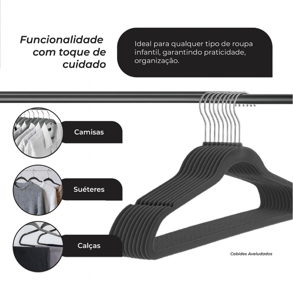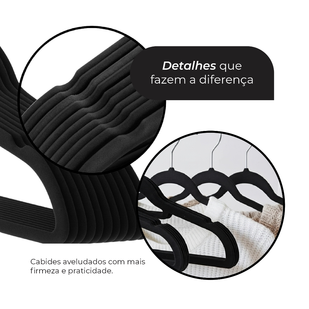 Caixa com 50 Cabides de Veludo Adulto Slim Antiderrapante