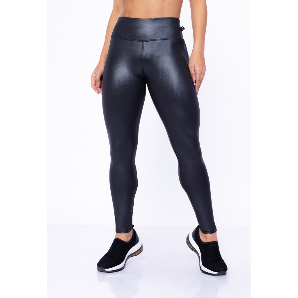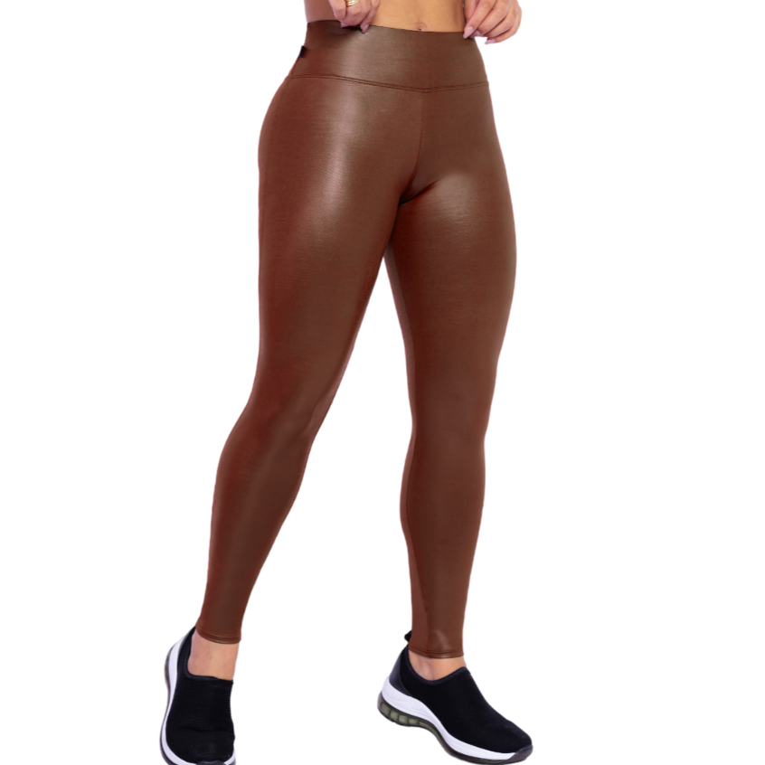 Calça Legging Suplex Cirrê Lycra Couro Cintura Alta