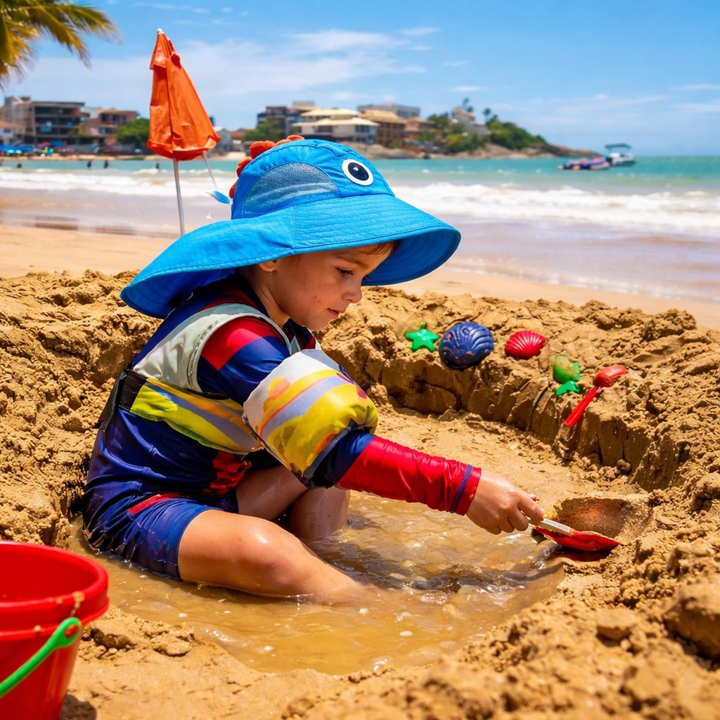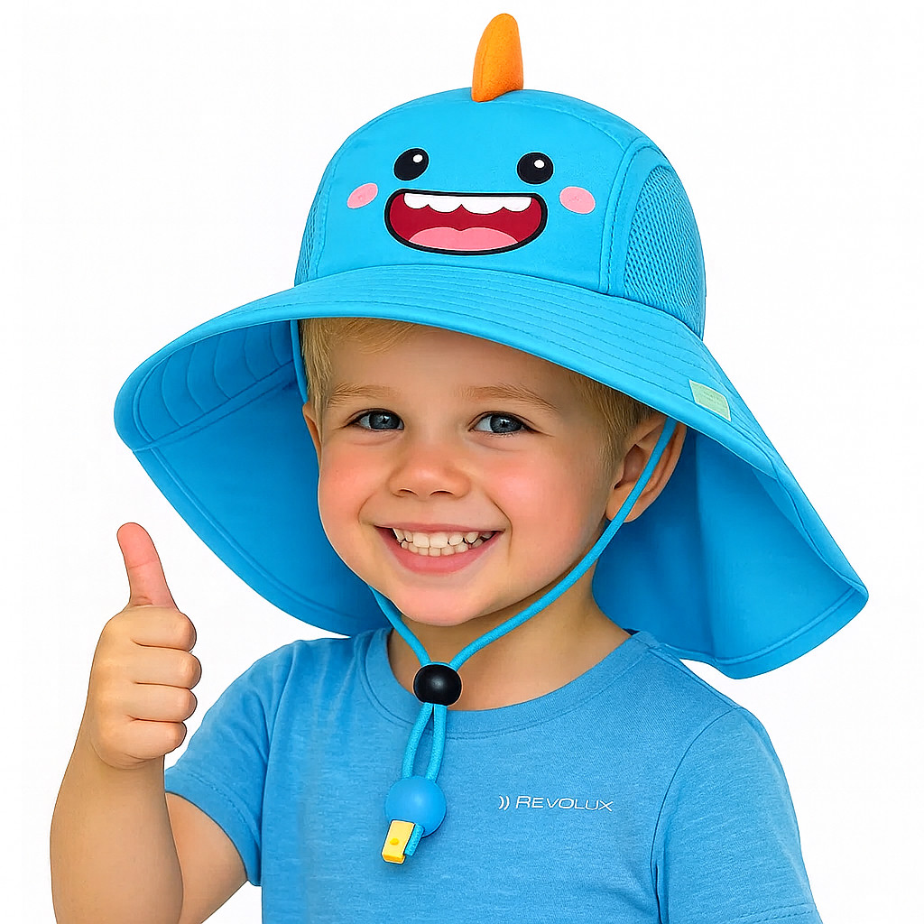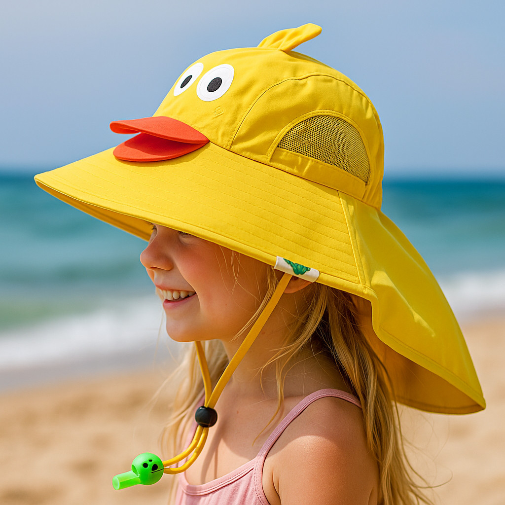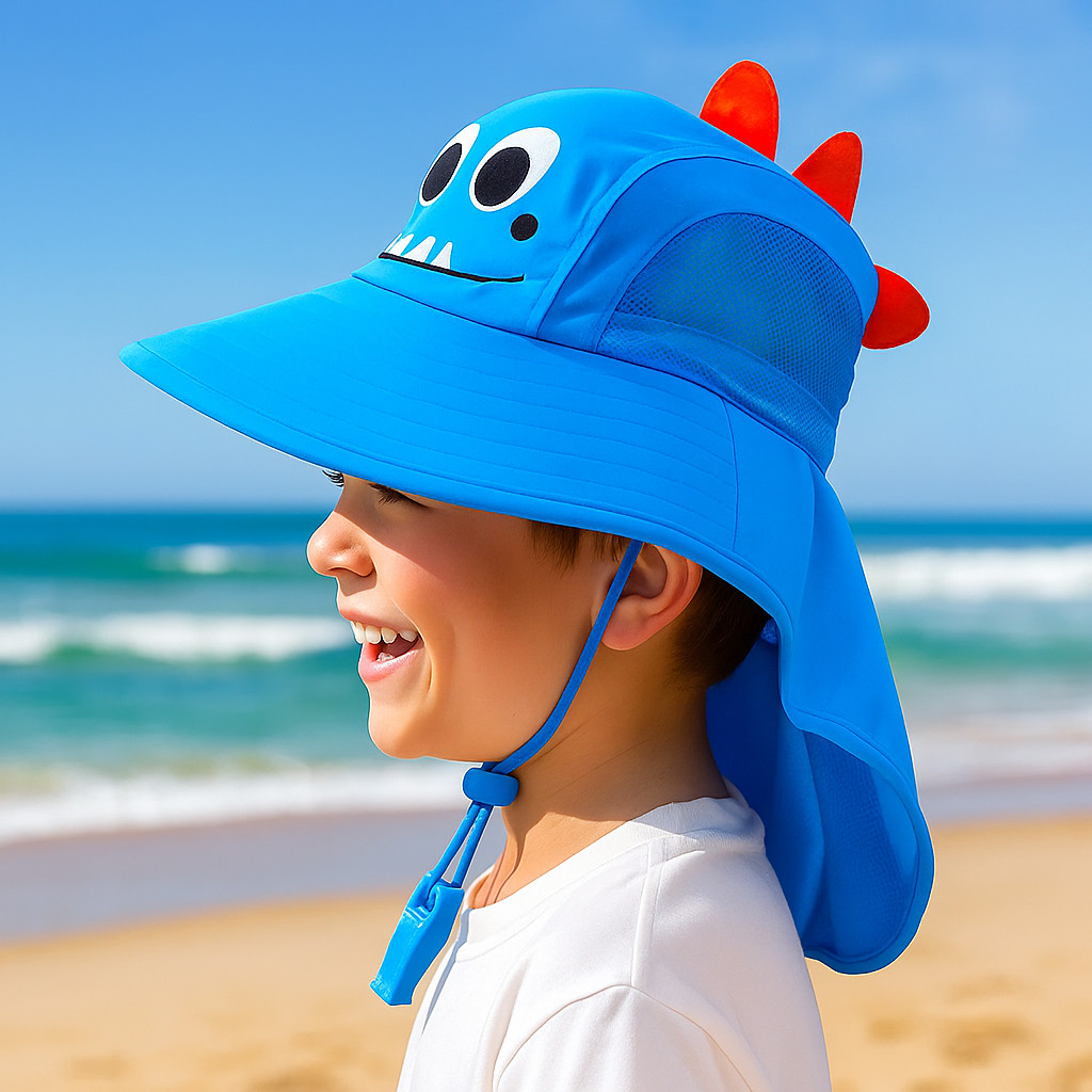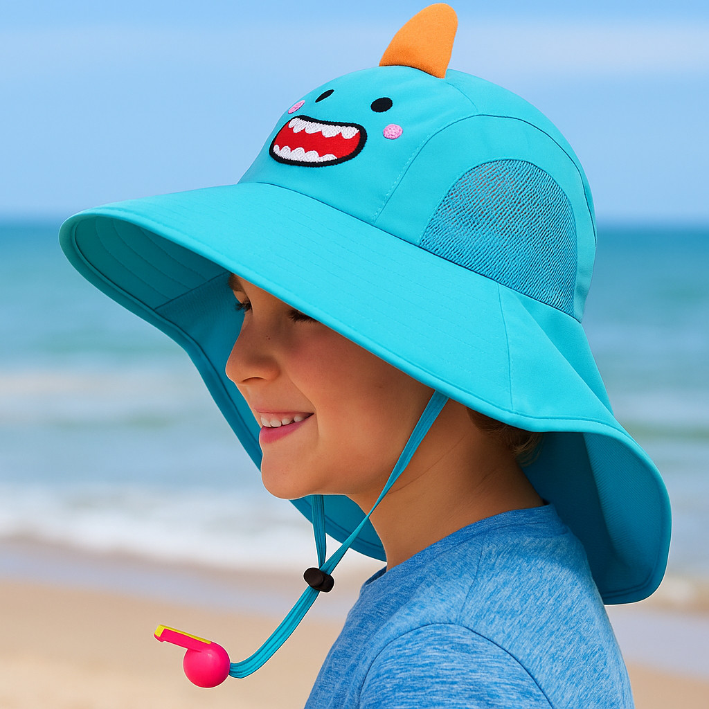Chapéu Infantil Protetor Sol Para Bebê Criança Com Aba Grande Para Proteção Raio UV Verão Com Apito Desenhos Fofos