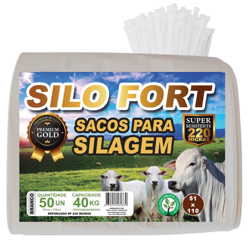 Sacos De Silagem BR 51x110 Reforçado Premiun Gold 50un C/ Lacre