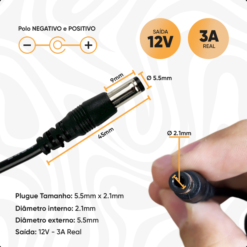 Fonte De Alimentação 12V 3A Automatica Ac/dc Bivolt 110-240v Plugue P4 P/ Camera Modem CFTV Fita Led
