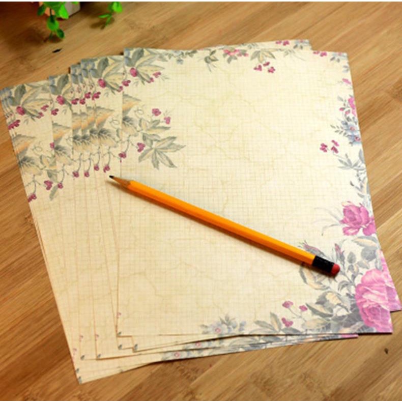 10Pcs Papelaria Vintage Papel De Escrita Floral Conjuntos De Correspondência Para Cartas À Mão , Cores Sortidas